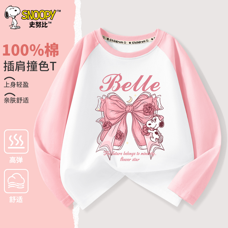 史努比童装女童长袖t恤纯棉2025新款儿童秋季洋气上衣女孩秋装潮