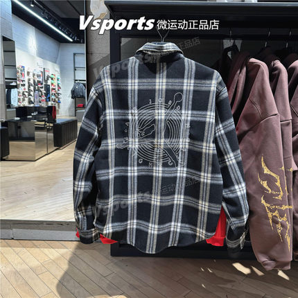 JORDAN耐克外套男2026春篮球运动休闲翻领长袖格子衬衫IB1904-010