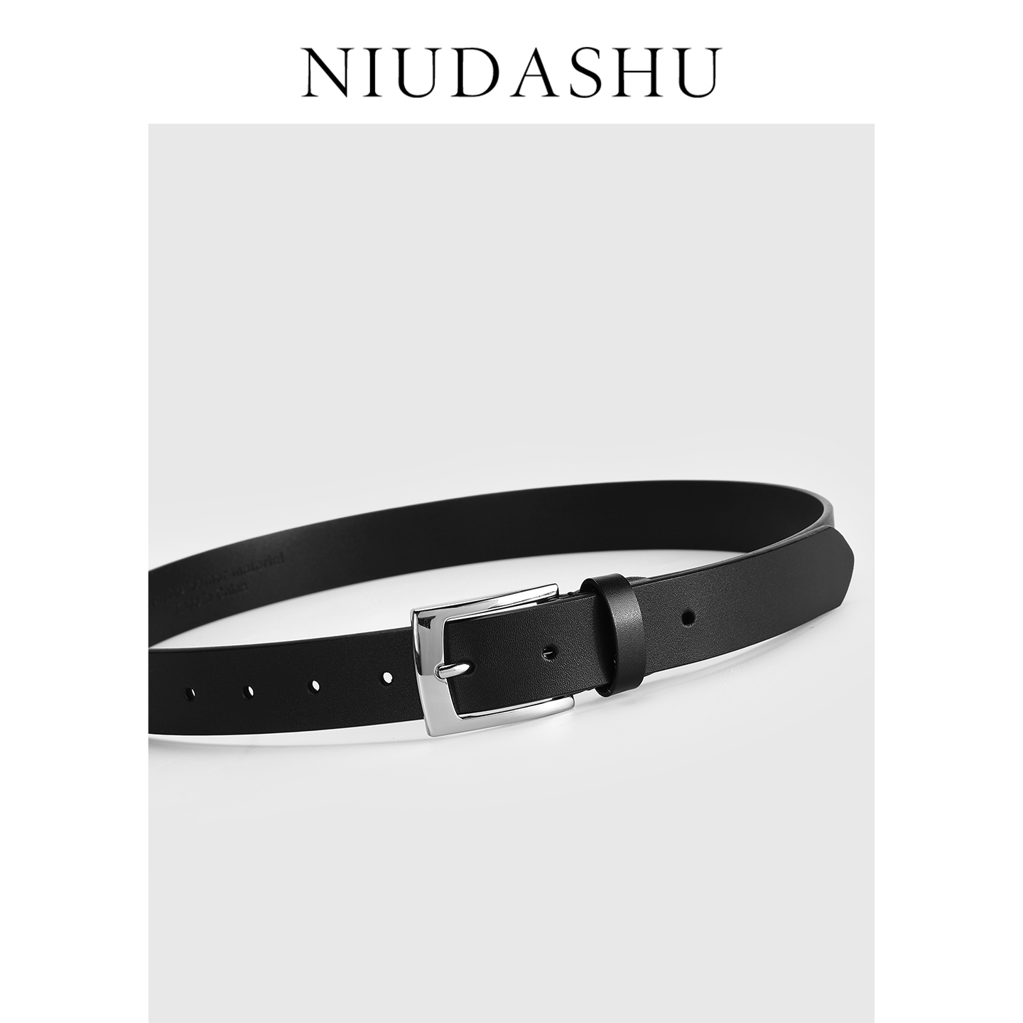皮带男女同款真皮装饰简约百搭小众设计感牛仔裤腰带女黑针扣设计
