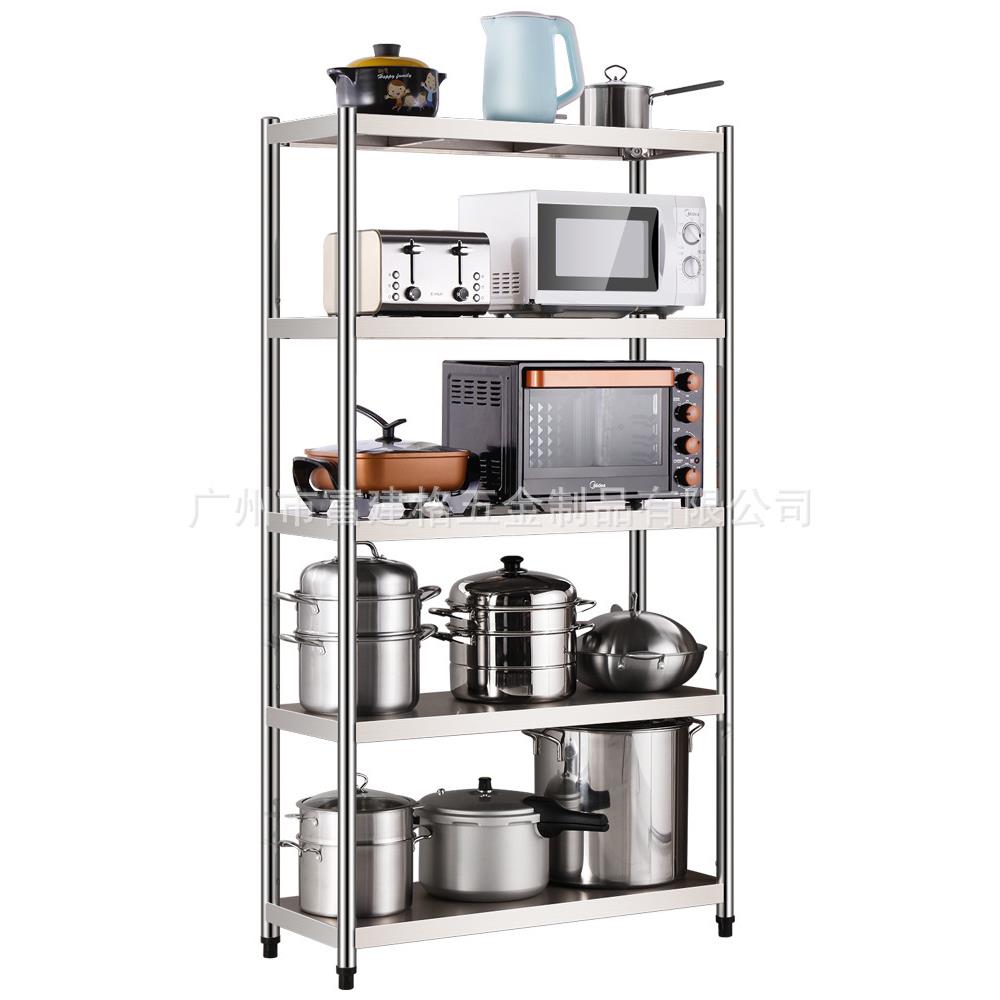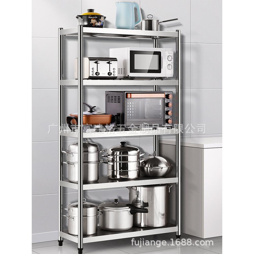 不锈钢厨房置物架五层落地多层收纳架微波炉货架杂物架储物架子