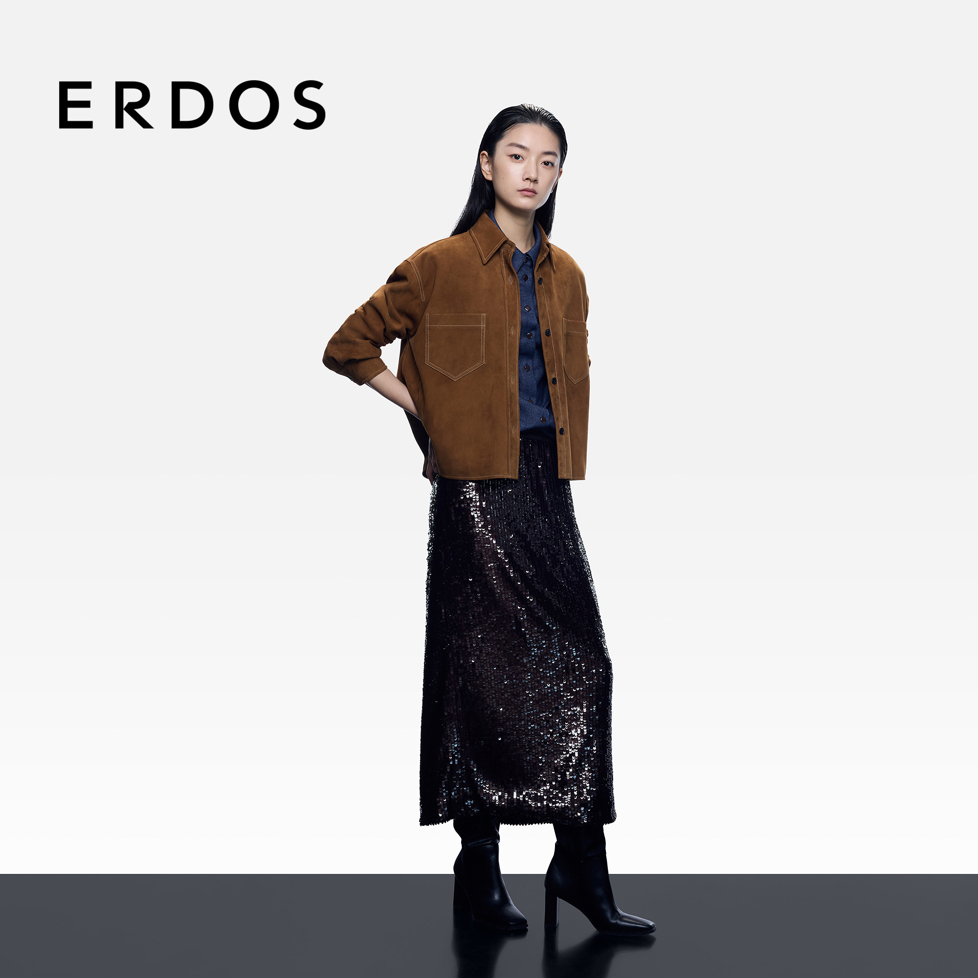 【秀场同系列】ERDOS 亮片装饰半身裙25年秋冬新品宽松直筒女裙装