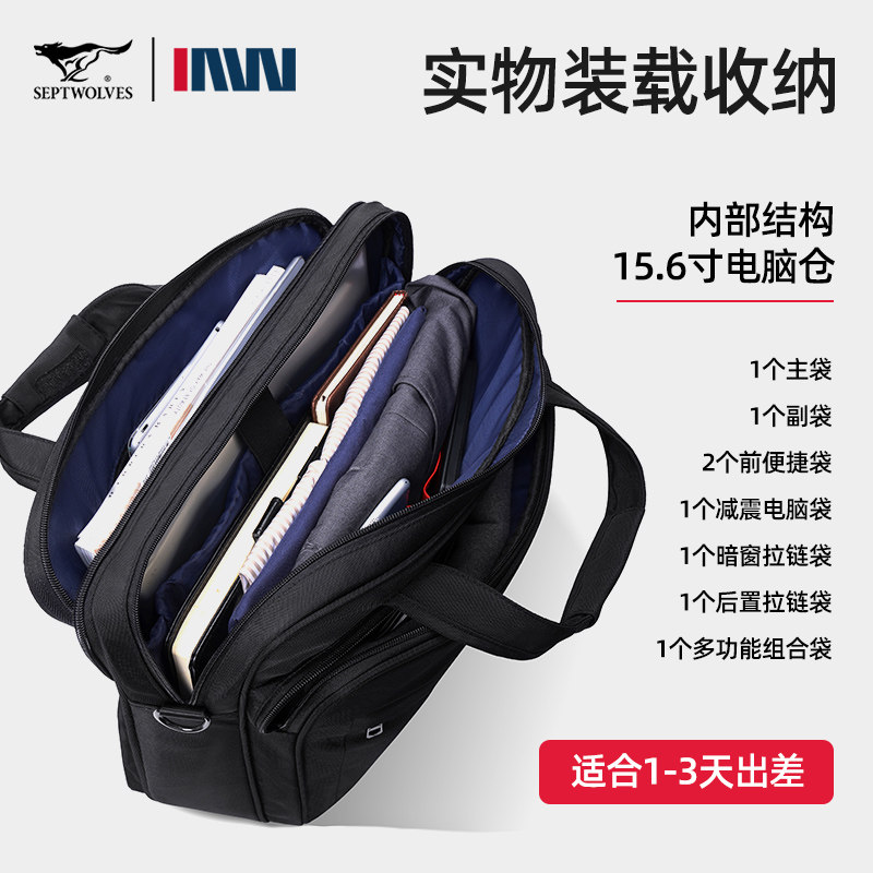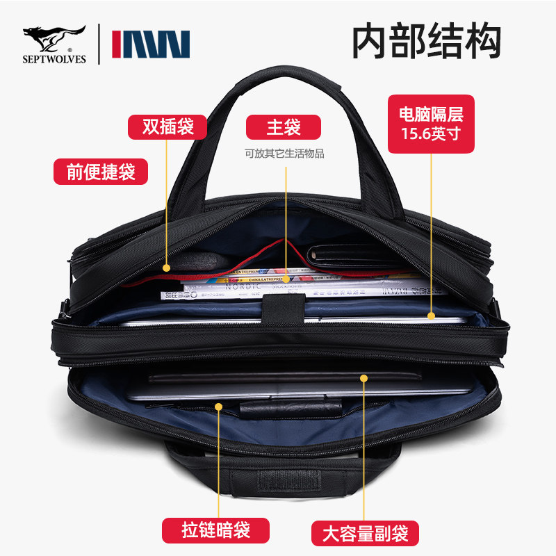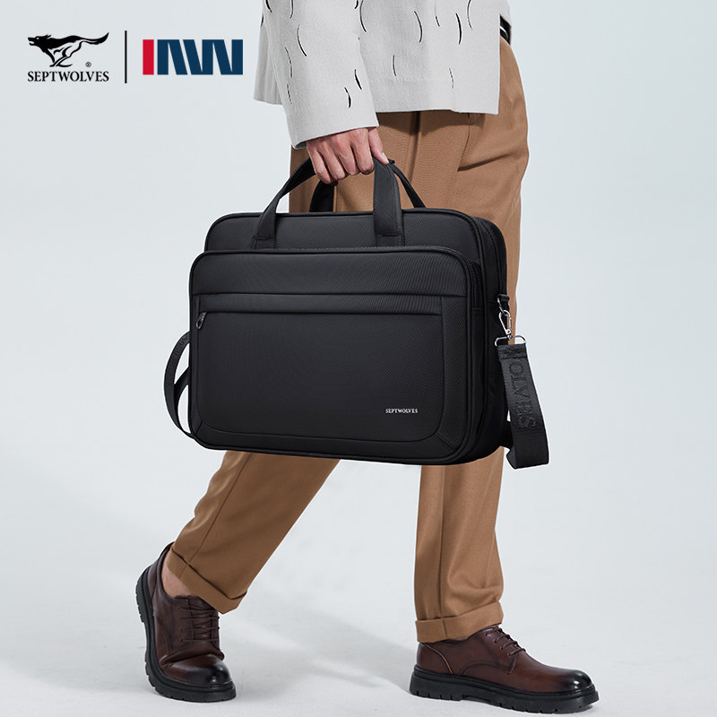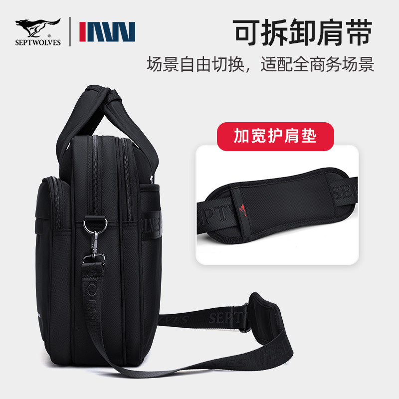七匹狼超大容量公文包单肩商务手提电脑包简约休闲通勤男士手提包