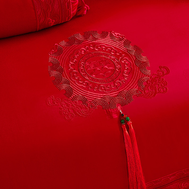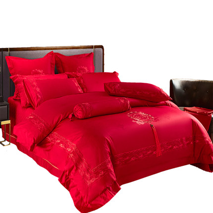 100支全棉婚庆四n件套新婚床单被套大红色结婚纯棉六八十件套床品