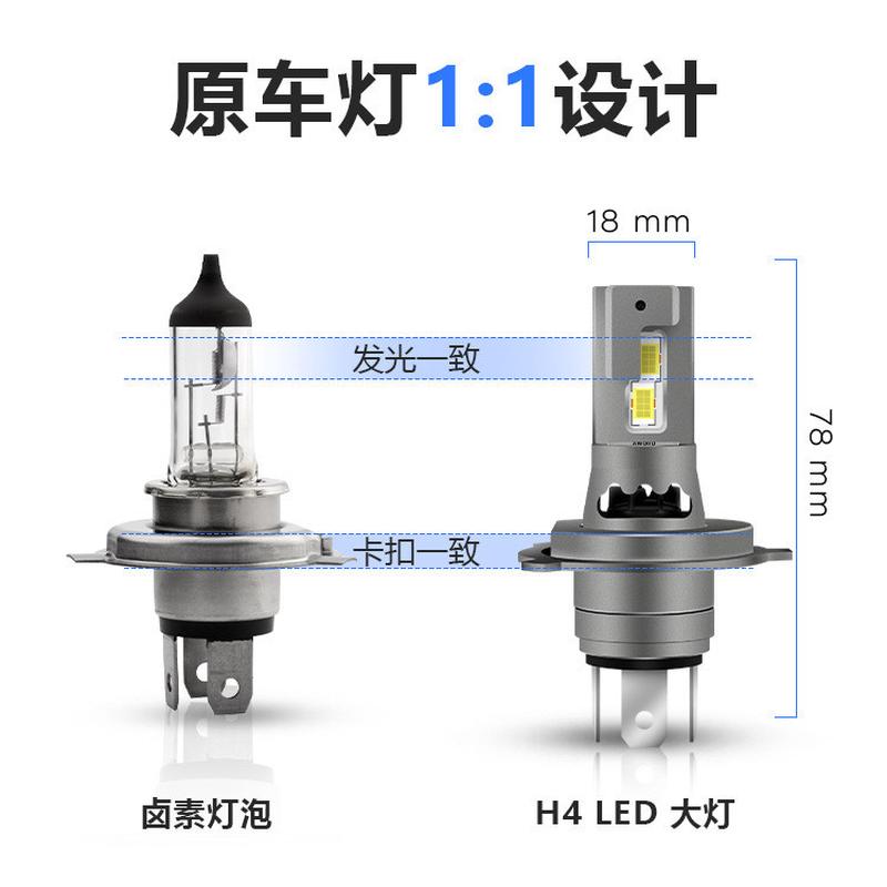 新品H4汽车led大灯1:1设计带风扇高亮直插式迷你LED大灯远近一体
