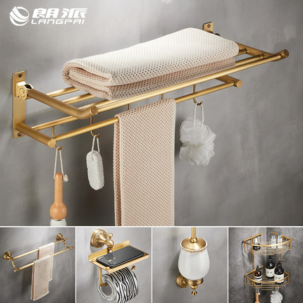全铜仿古毛巾架折叠浴巾架卫生间浴室置物架壁挂卫浴五金挂件套装