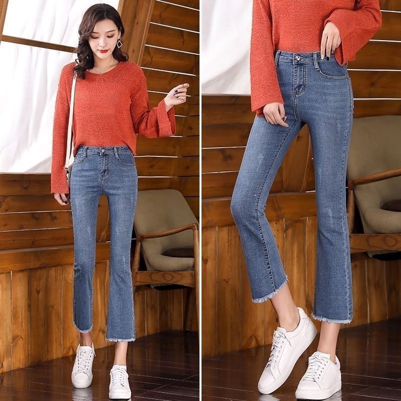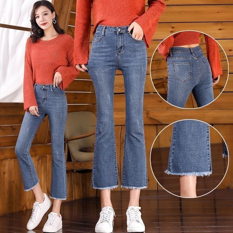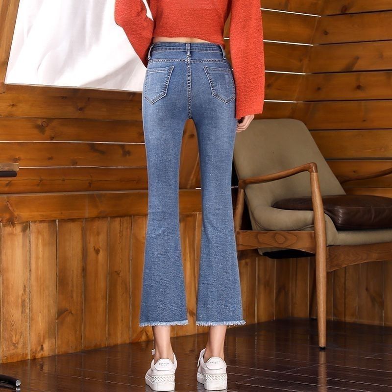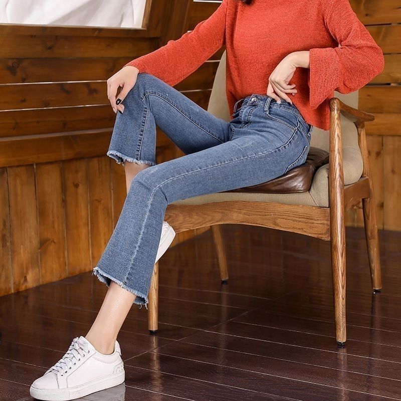 九分微喇牛仔裤女小个子高腰显瘦水洗弹力毛边新款七分牛仔裤女