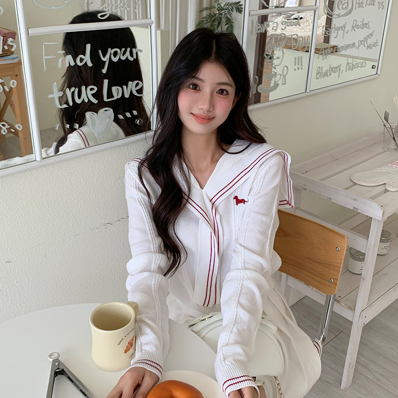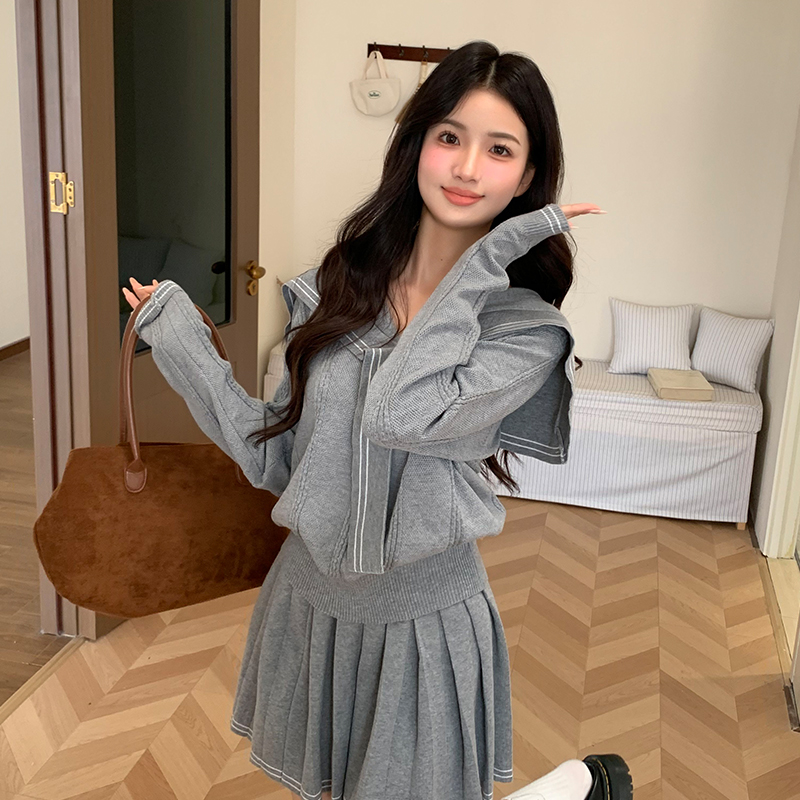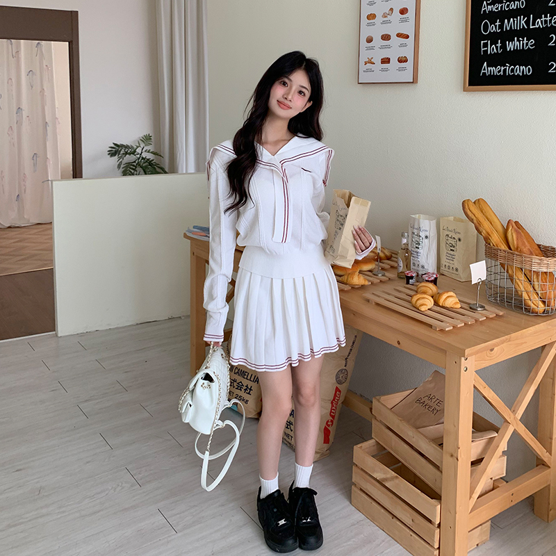 橘子树在哪儿时尚海军领毛衣套装女秋季修身显瘦针织衫短裙两件套