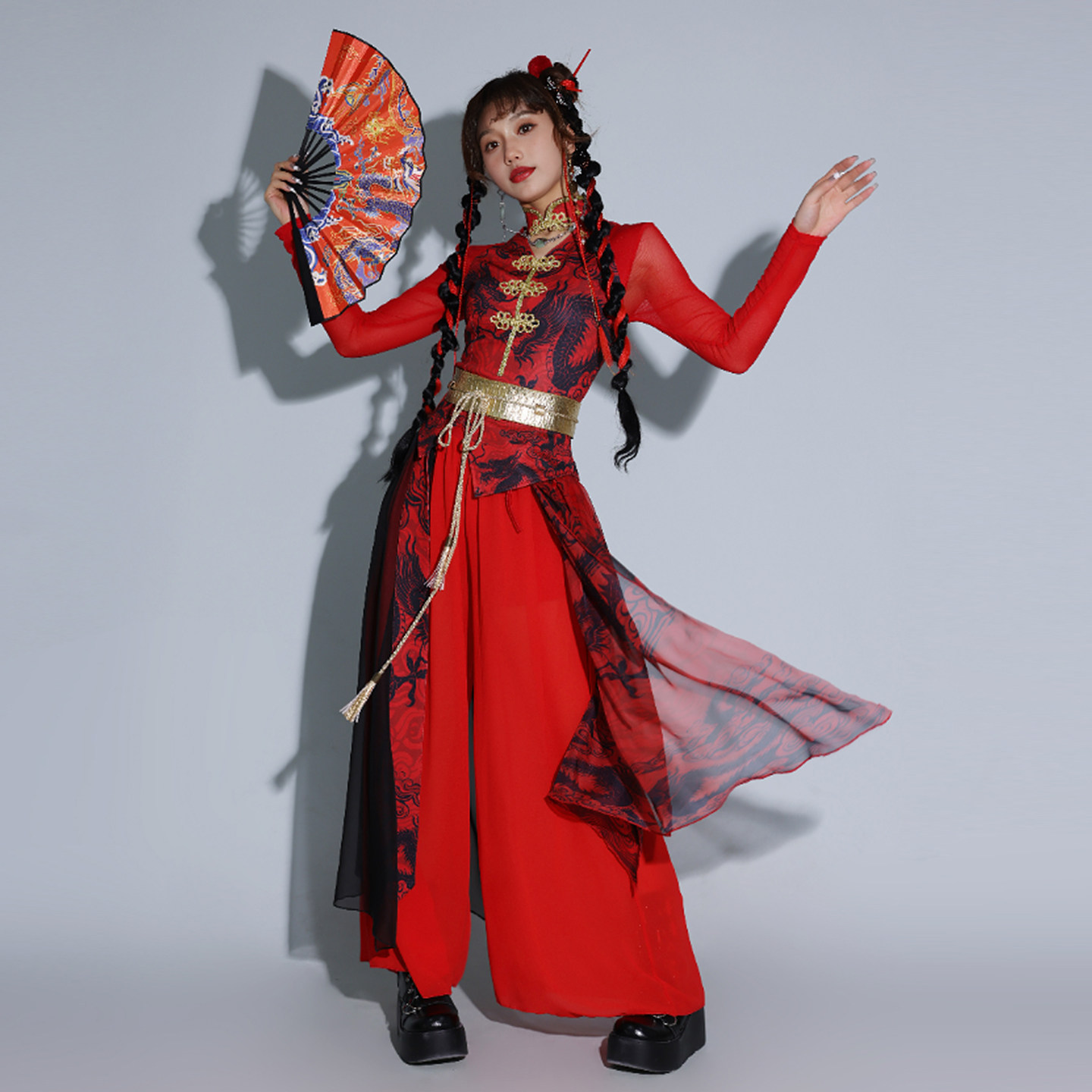 中国风女团演出服装女团打歌服爵士舞打鼓演出服女新款舞台表演服