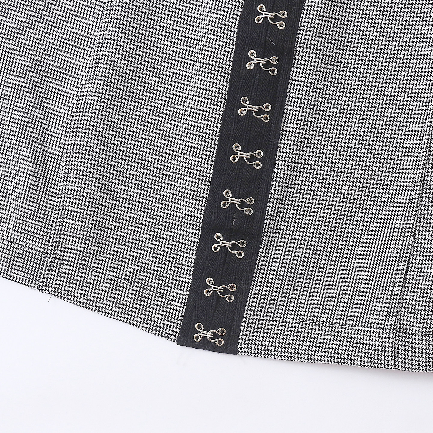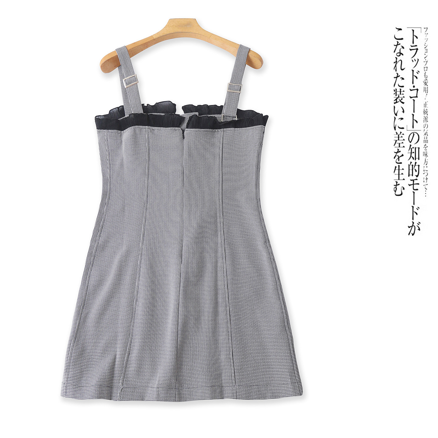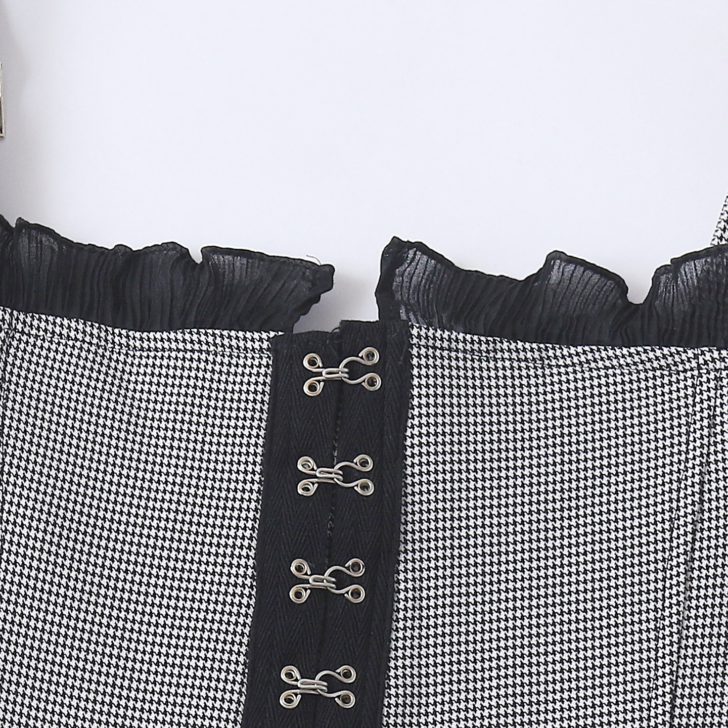 千鸟格背带连衣裙 夏季新款外贸女装花边抹胸领单排搭扣包臀短裙