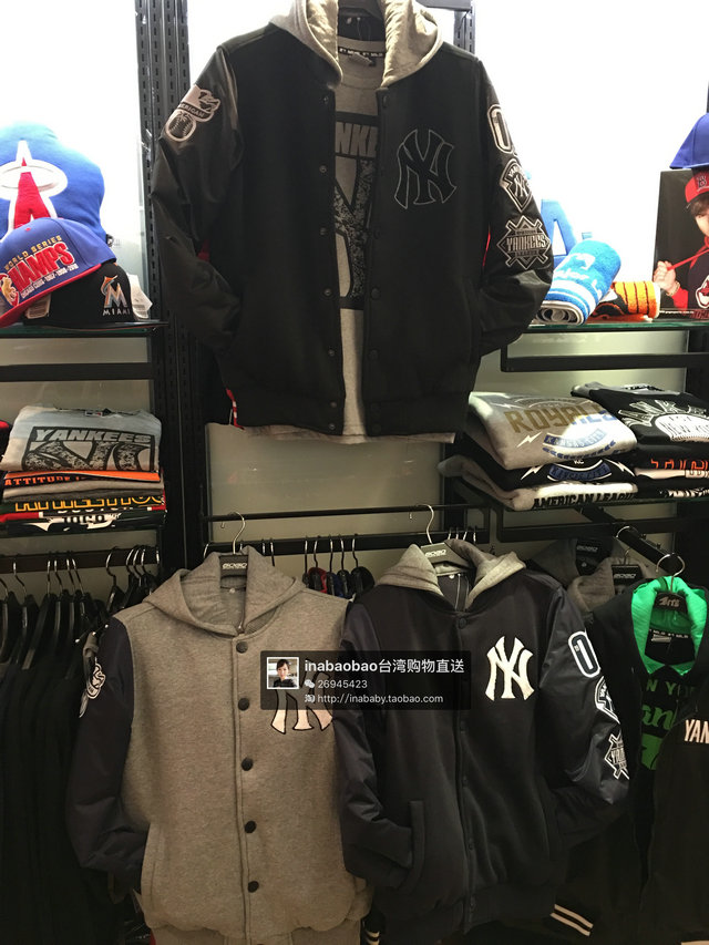 台湾专柜代购直邮MLB 洋基队男女棒球服情侣装夹棉连帽棉衣短外套