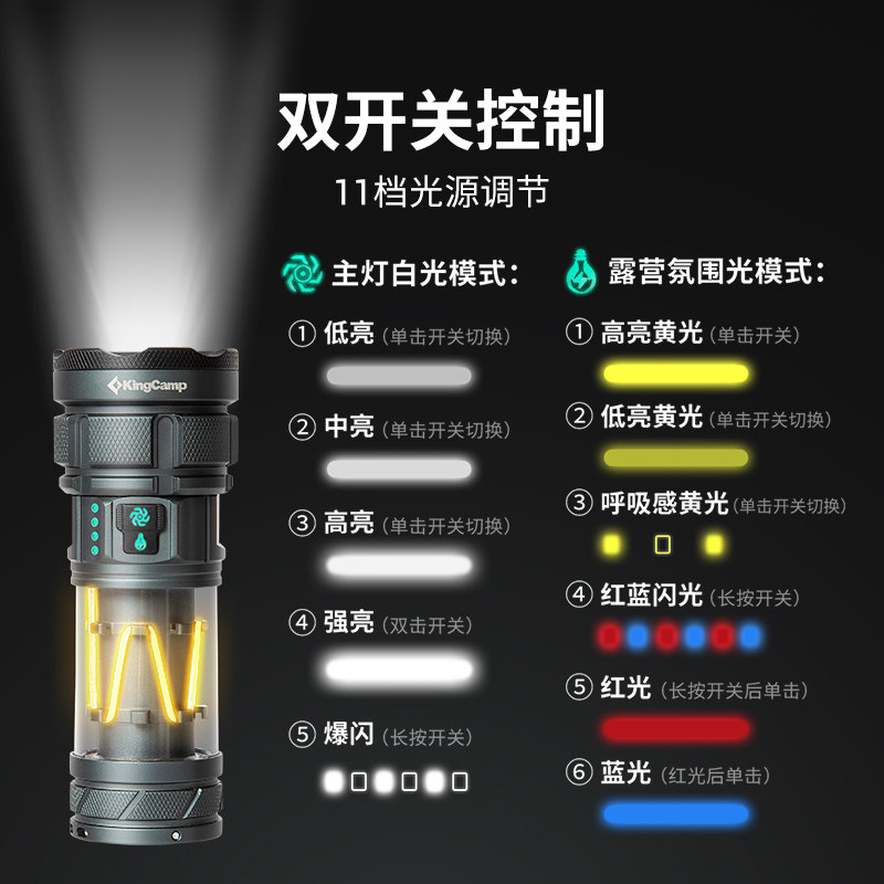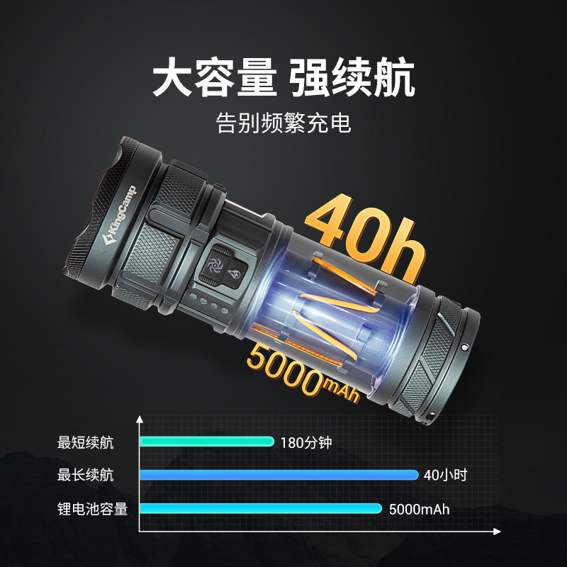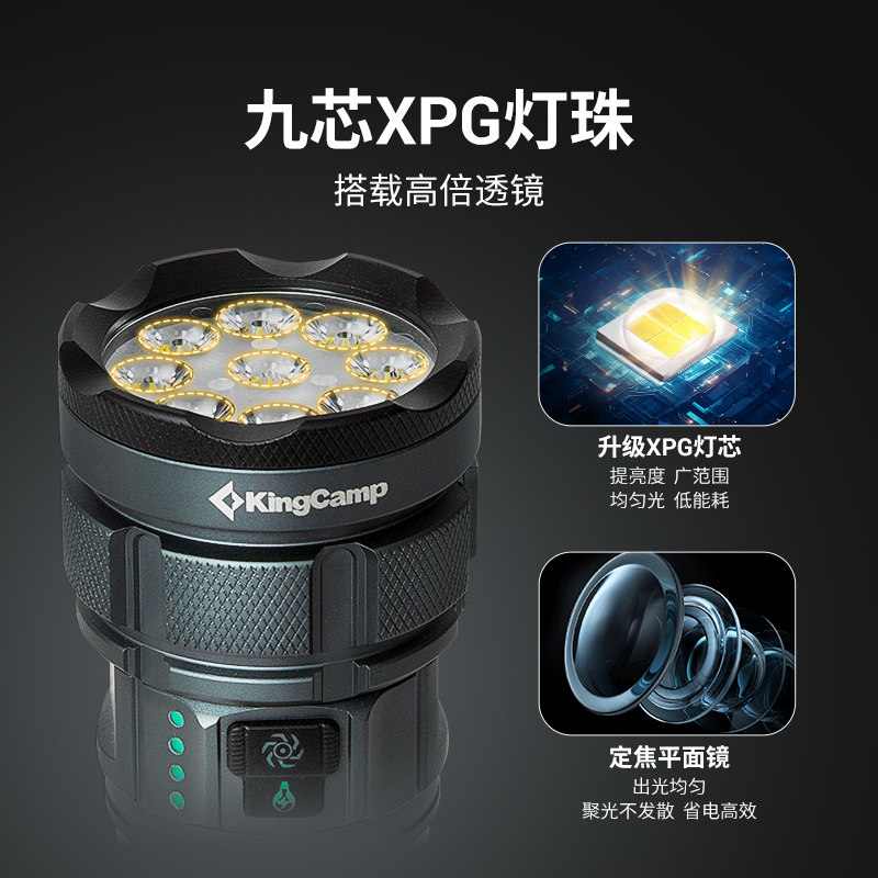 KingCamp手电筒强光充电露营灯户外家用小型超长续航照明灯营地灯