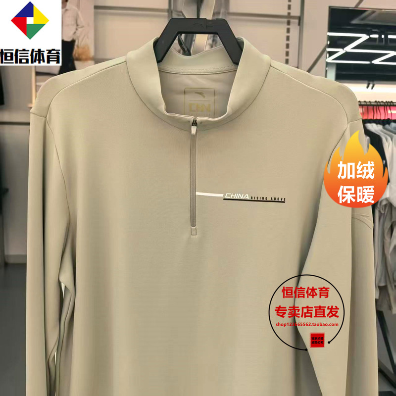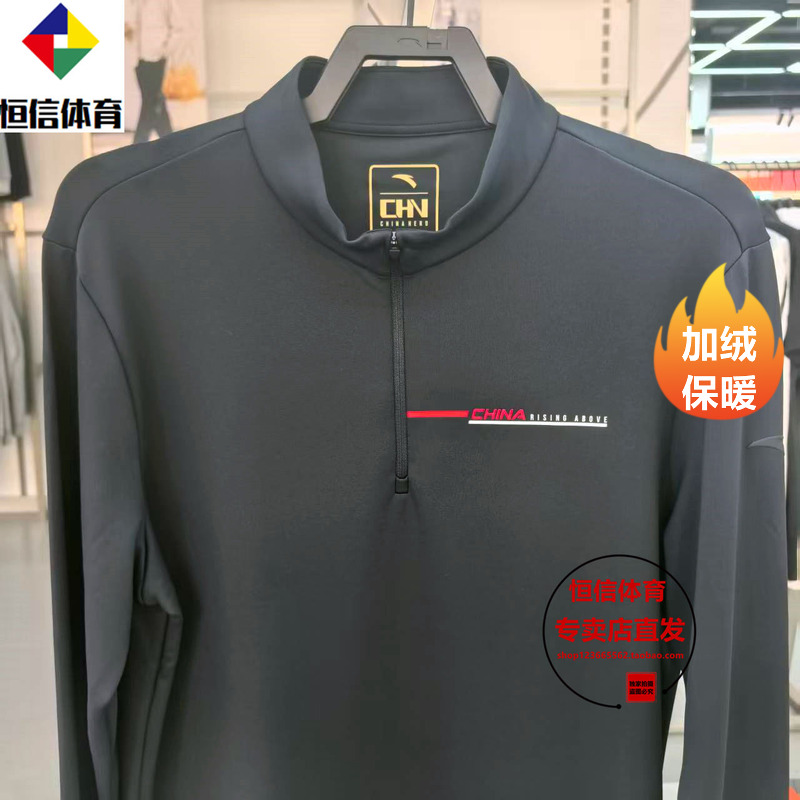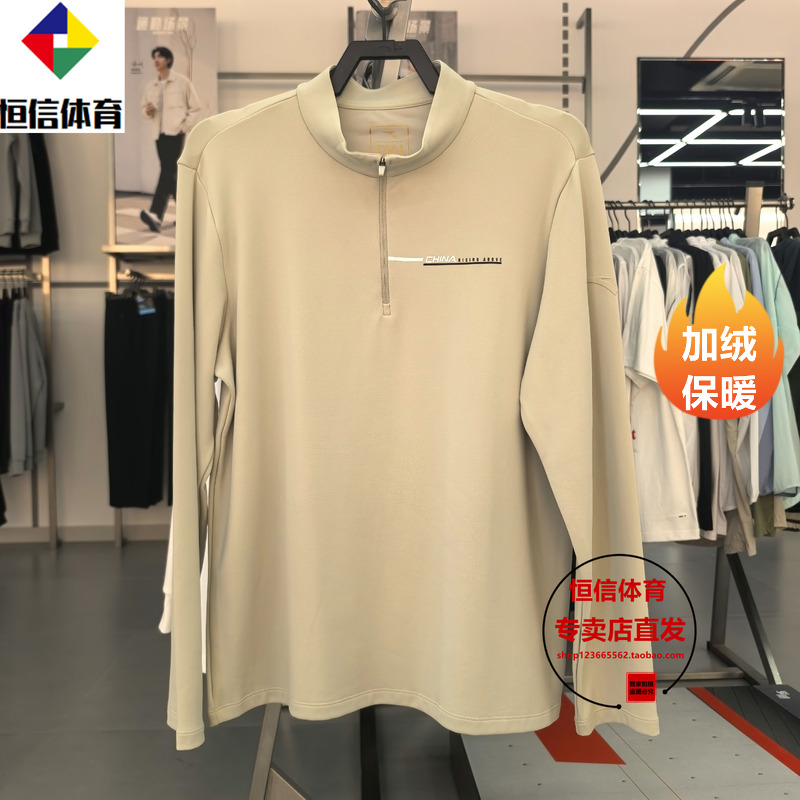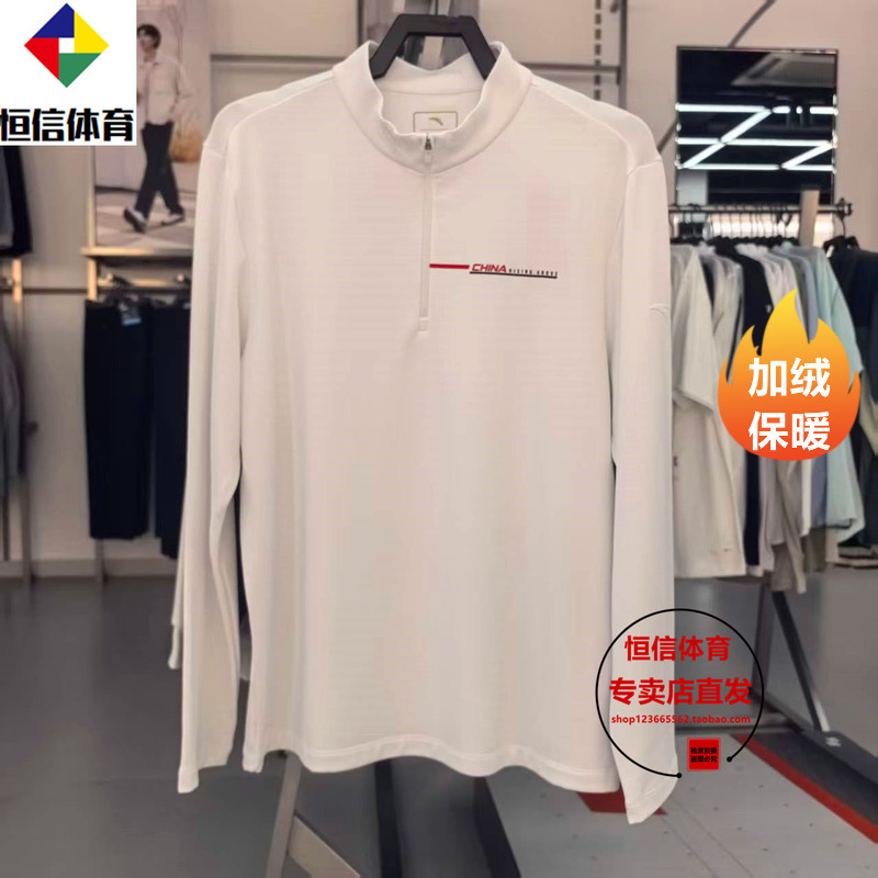 安踏男2025冬季薄绒潮流半拉链立领长袖T恤卫衣针织衫152547401N