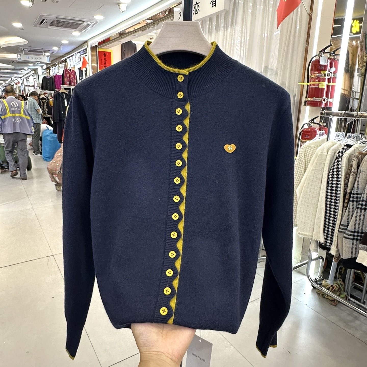 年轻妈妈拼色半高领套头针织衫秋季新款洋气小衫中老年毛衣打底衫