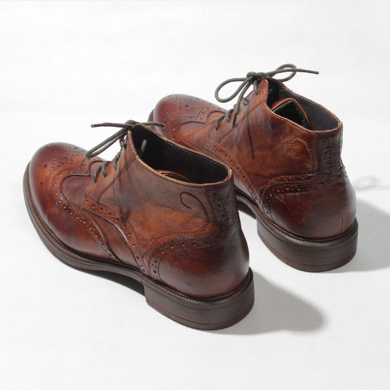 商务休闲手工复古马丁靴英伦风高帮布洛克雕花皮鞋工装短靴潮流男