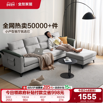 全友家居仿棉麻布艺沙发客厅家用小户型三人位北欧直排脚踏沙发