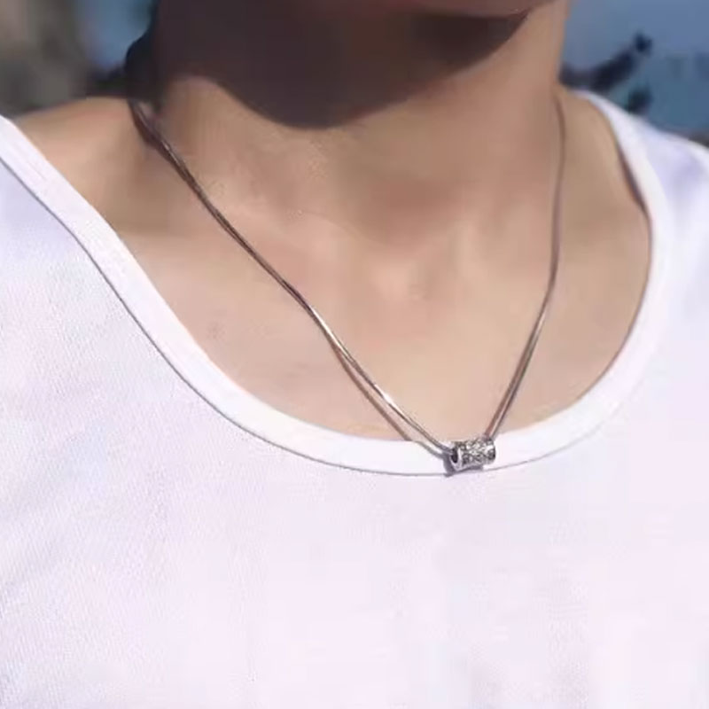 男士蛇骨链项链时尚简约圆珠锦鲤吊坠个性潮流冷淡风男款锁骨链