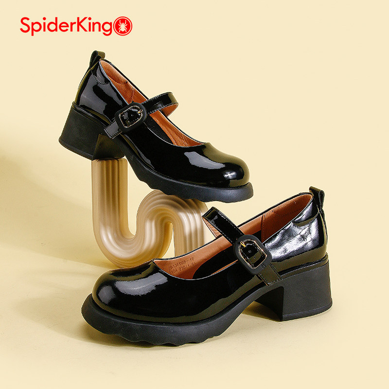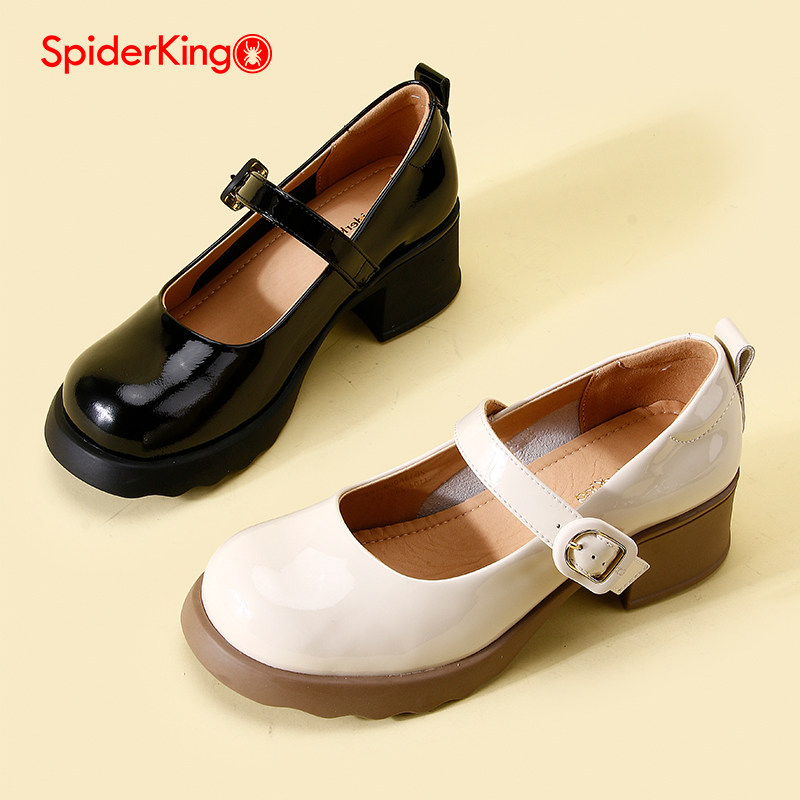 蜘蛛王女漆皮乐福鞋2025年高跟真皮玛丽珍鞋英伦风粗高跟浅口单鞋