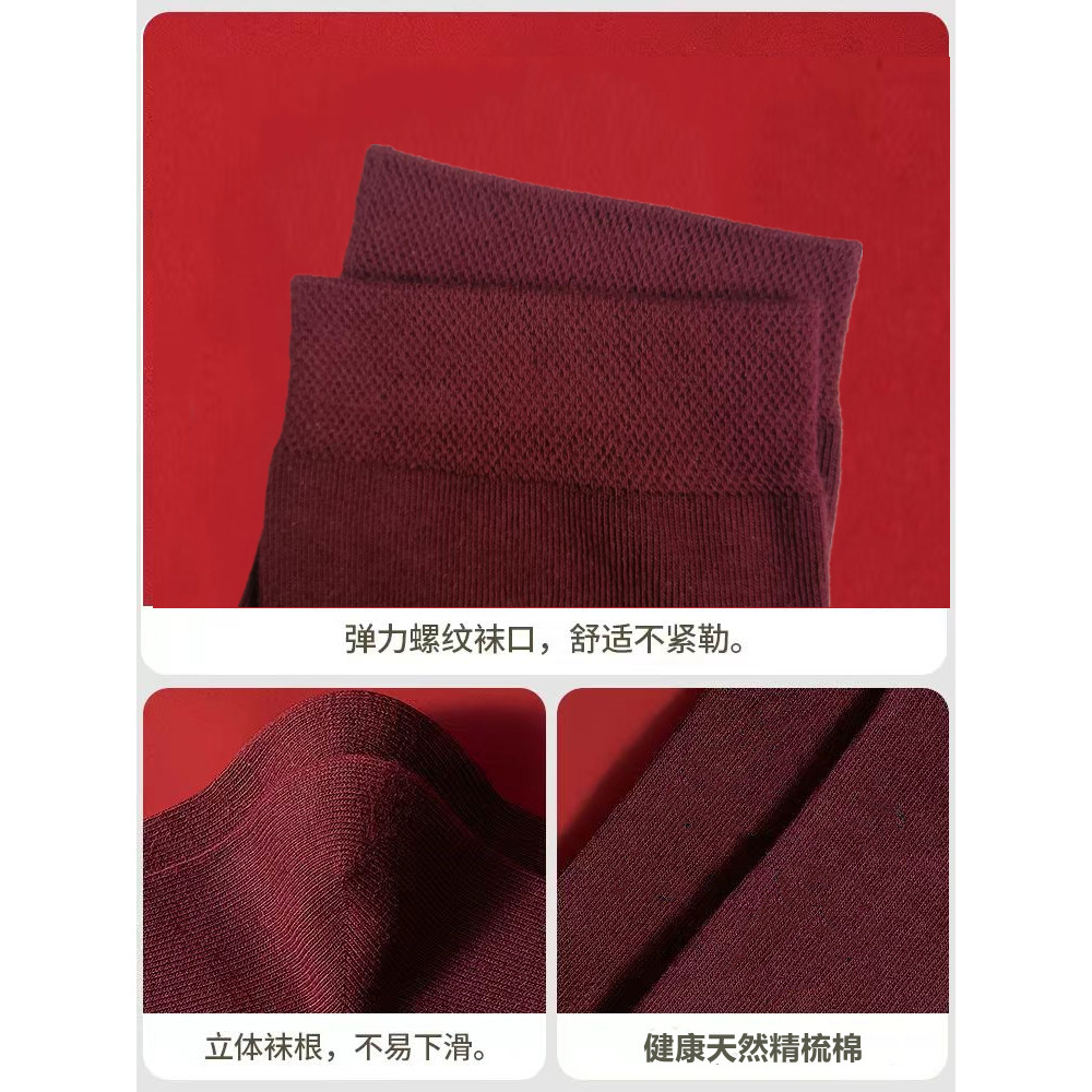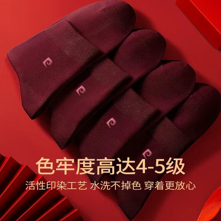 皮尔卡丹酒红色男袜枣红本命年暗红防臭精梳棉喜庆结婚刺绣标高档