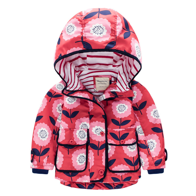 男女童外套 meanbear宝宝春装秋冬女童花朵小鸟户外连帽风衣夹克