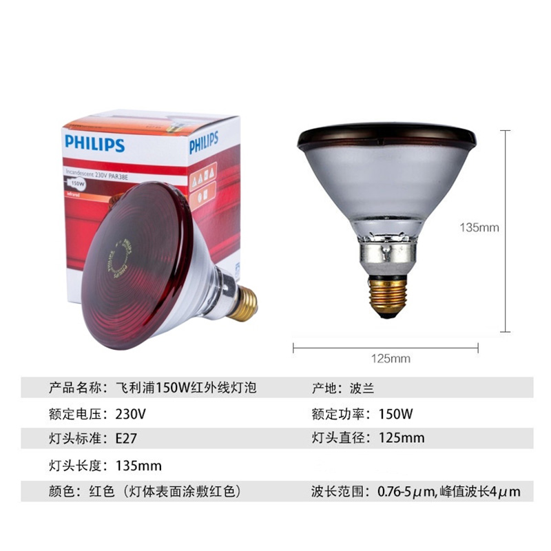 飞利浦加热远红外线理疗灯通用泡电烤灯灯头暖灯电烤配件100W150W