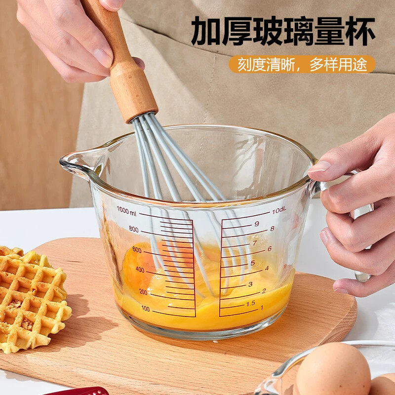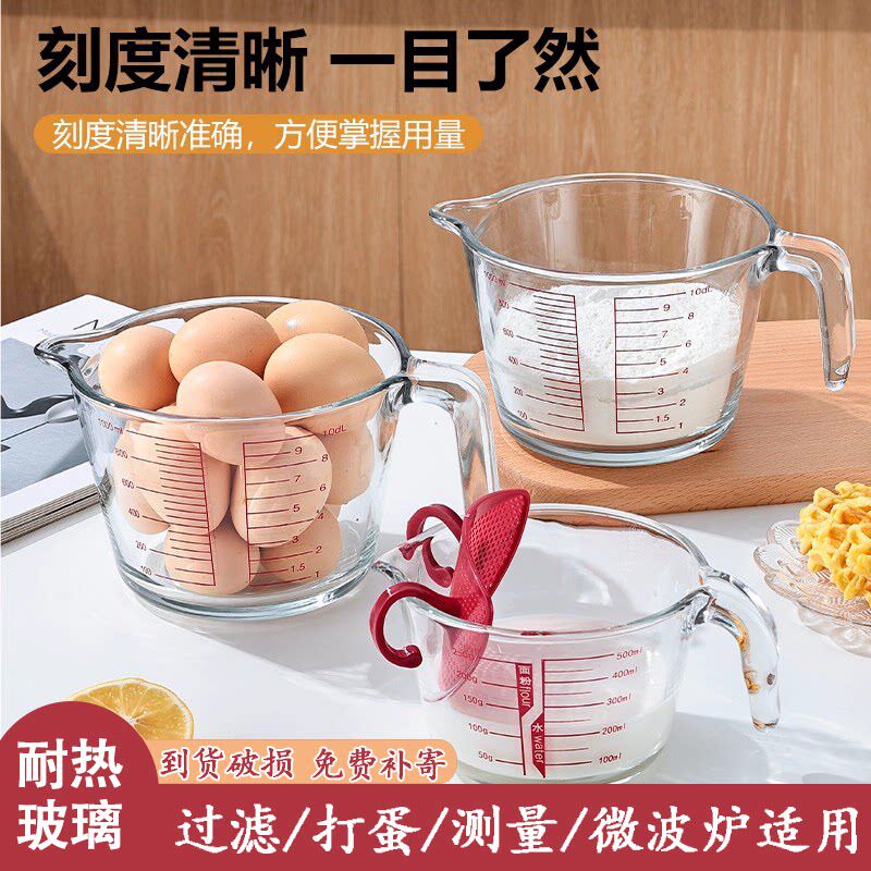 打鸡蛋专用杯玻璃碗耐高温家用防摔防爆大号大容量带刻度杯子烘焙