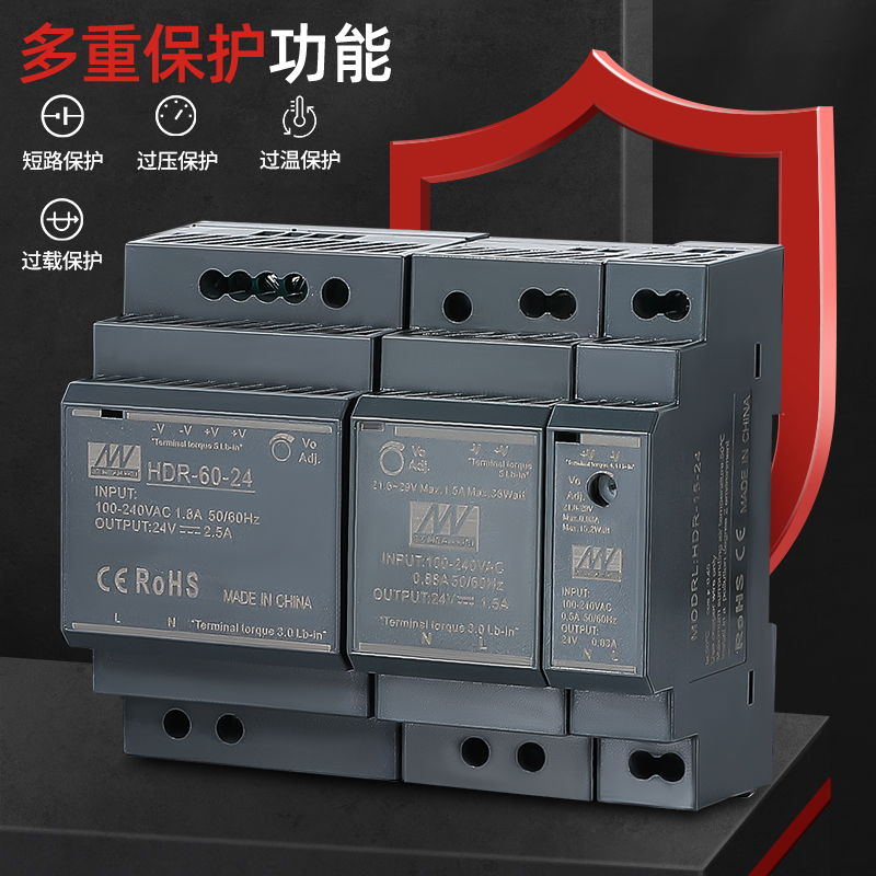 铭伟HDR-60W-24V开关电源直流5V12V48V明伟15W/30W/100W导轨 工业