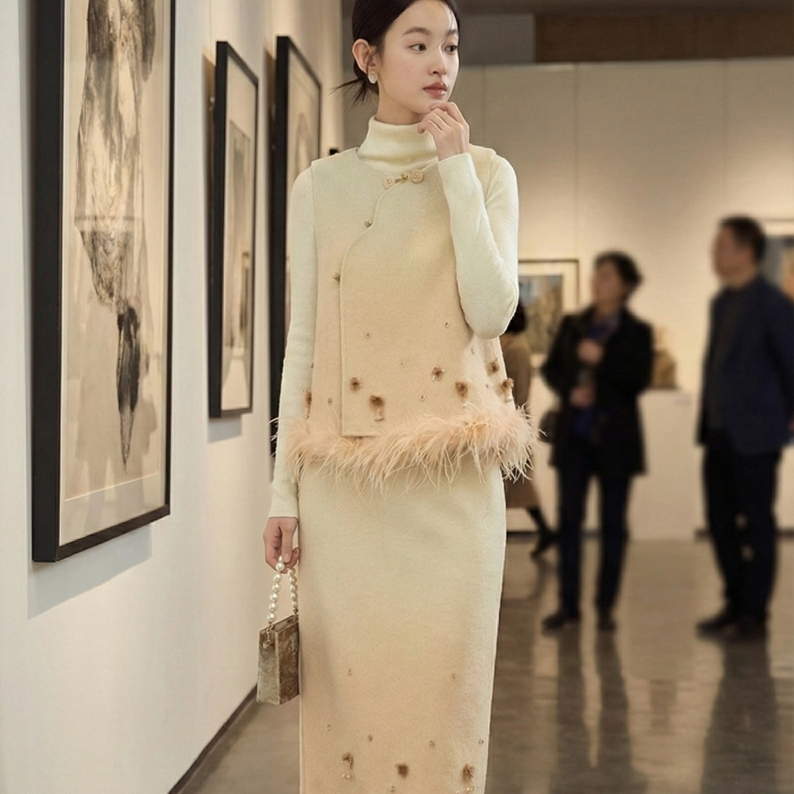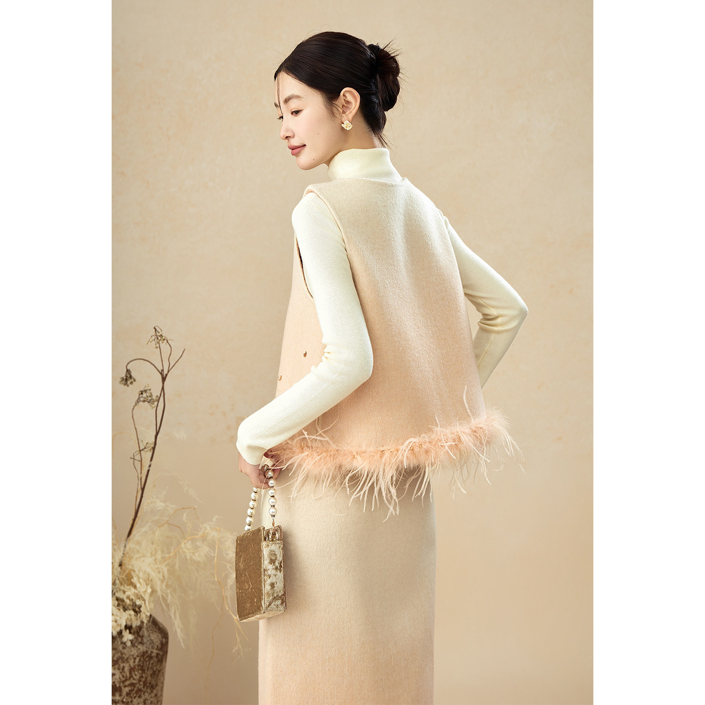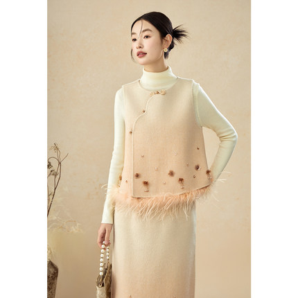 SHIBAI拾白原创新中式轻奢千金气质真丝双面呢钉珠氛围感渐变套装