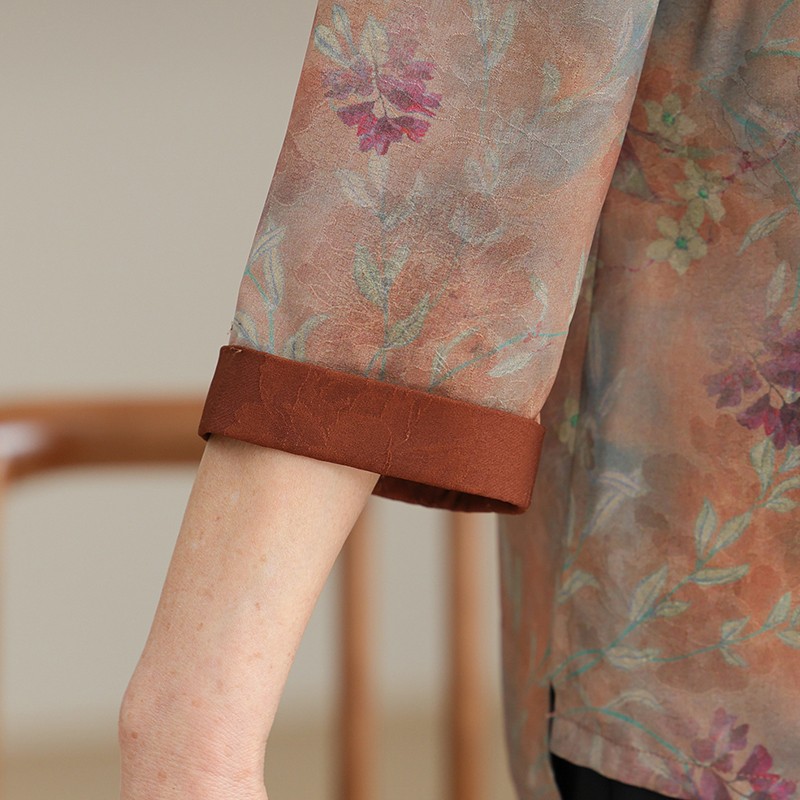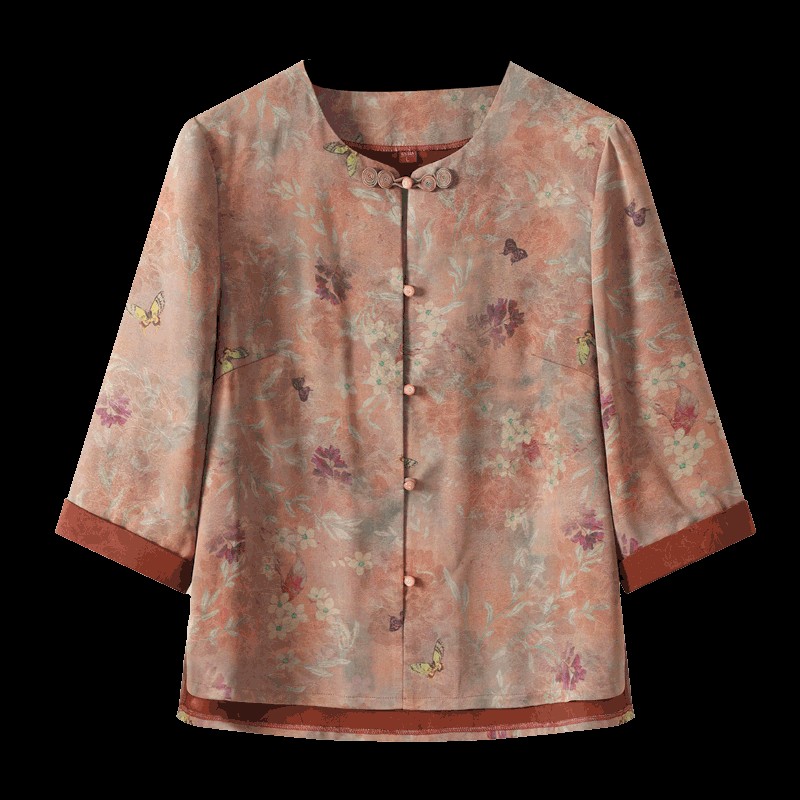 妈妈夏装衬衫2025新款中老年五分袖上衣女老人复古衣服奶奶装衬衣
