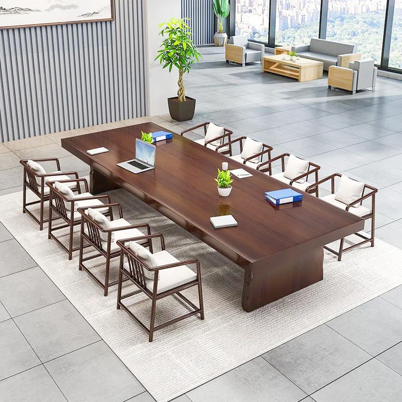 简约现代图书馆长条大桌子办公长桌工作洽谈桌全实木会议桌椅组合
