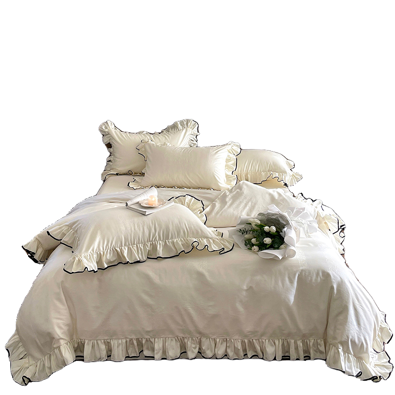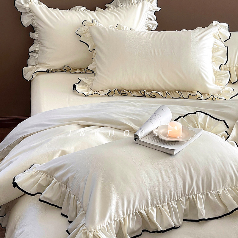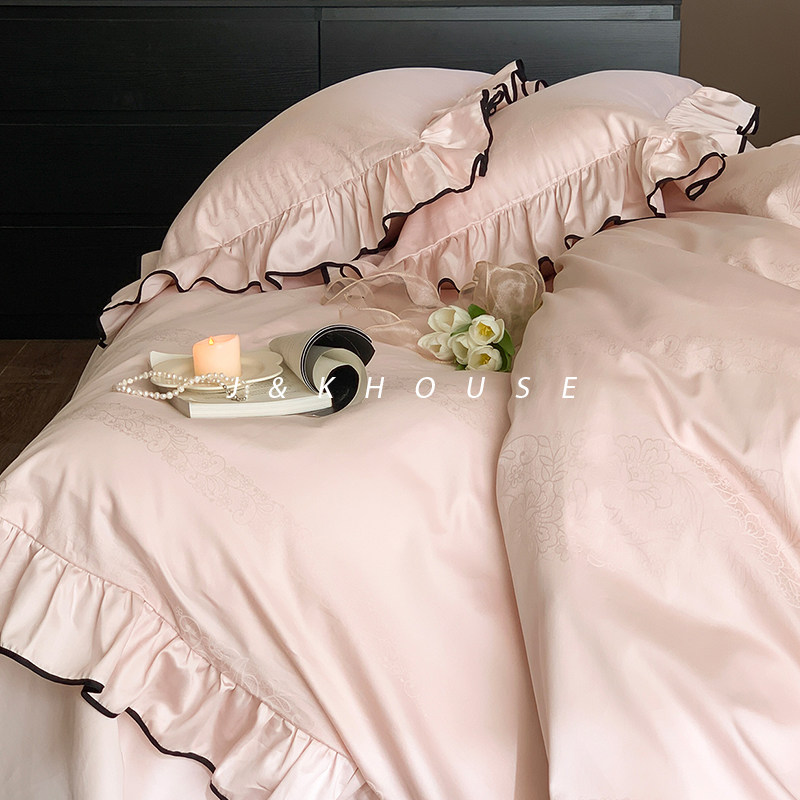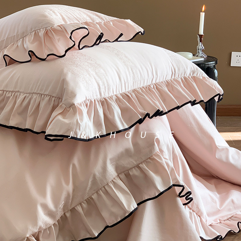 Retro|法式复古黑边提花四件套纯棉全棉床单被套少女花边床上用品