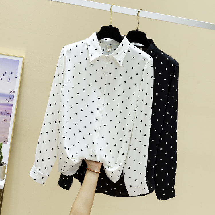秋季法式设计感小众波点雪纺衬衫女上衣宽松百搭洋气长袖打底衬衣