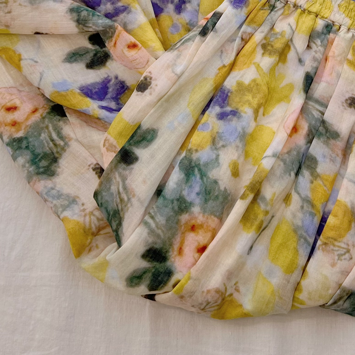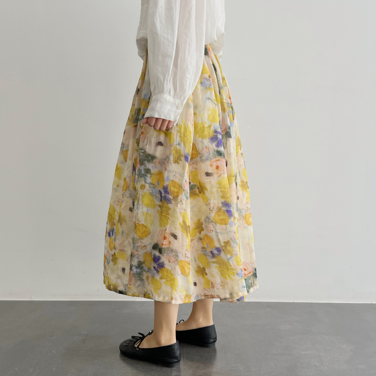 游园惊梦 独家定染高支苎麻滤镜油画晕染风A字中长款半身裙夏自制