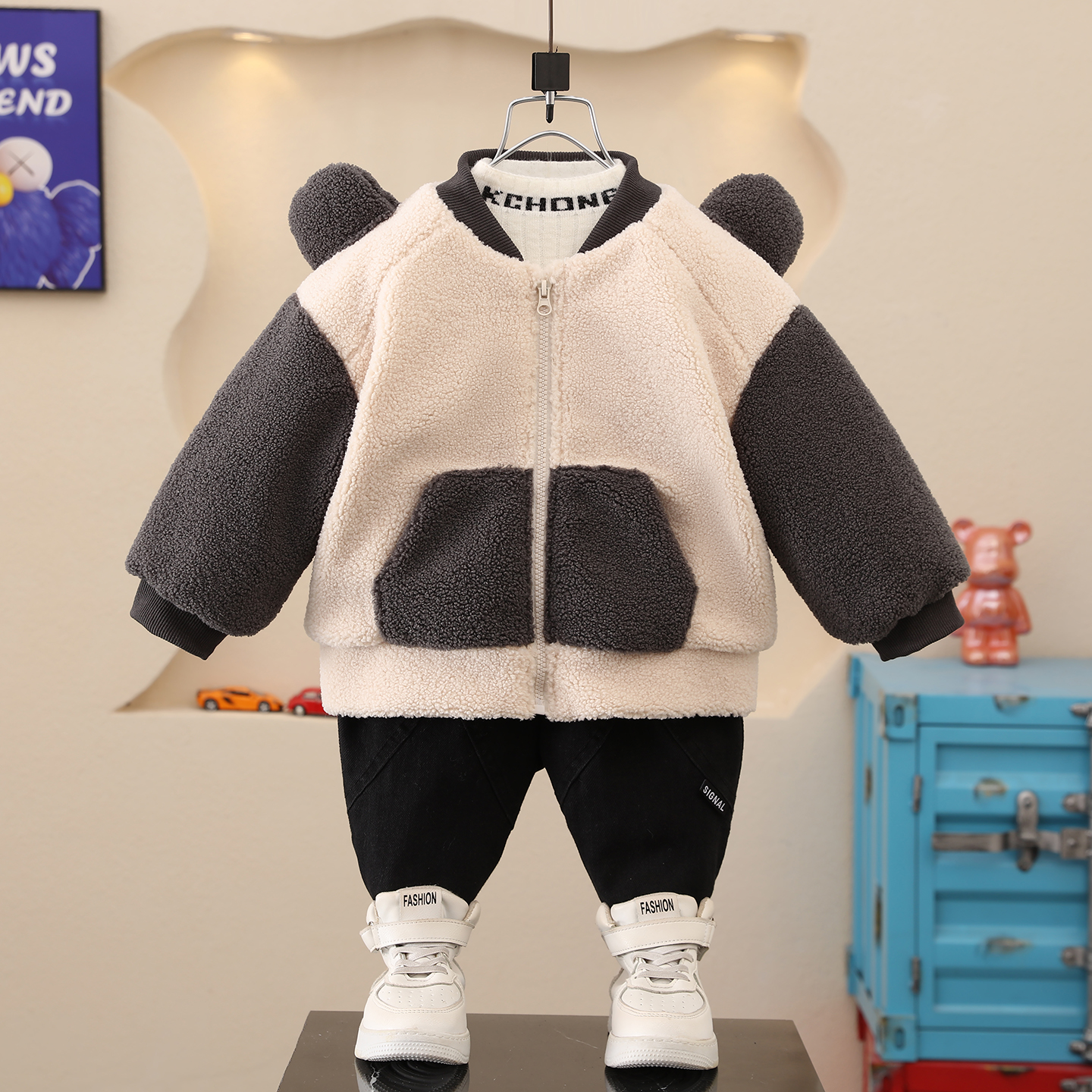 男童外套夹棉2025新款秋冬季加厚宝宝毛毛衣儿童冬装男孩棉服夹克