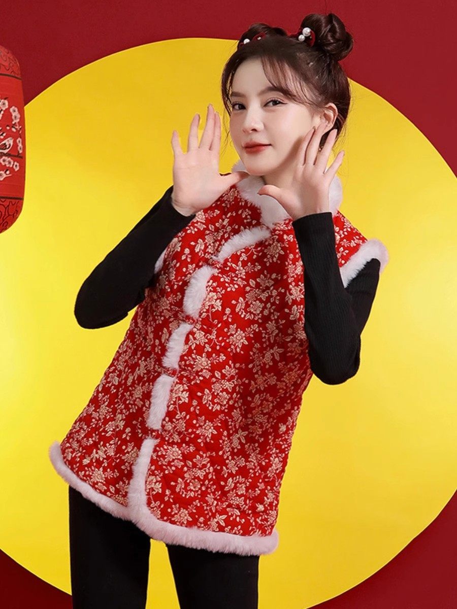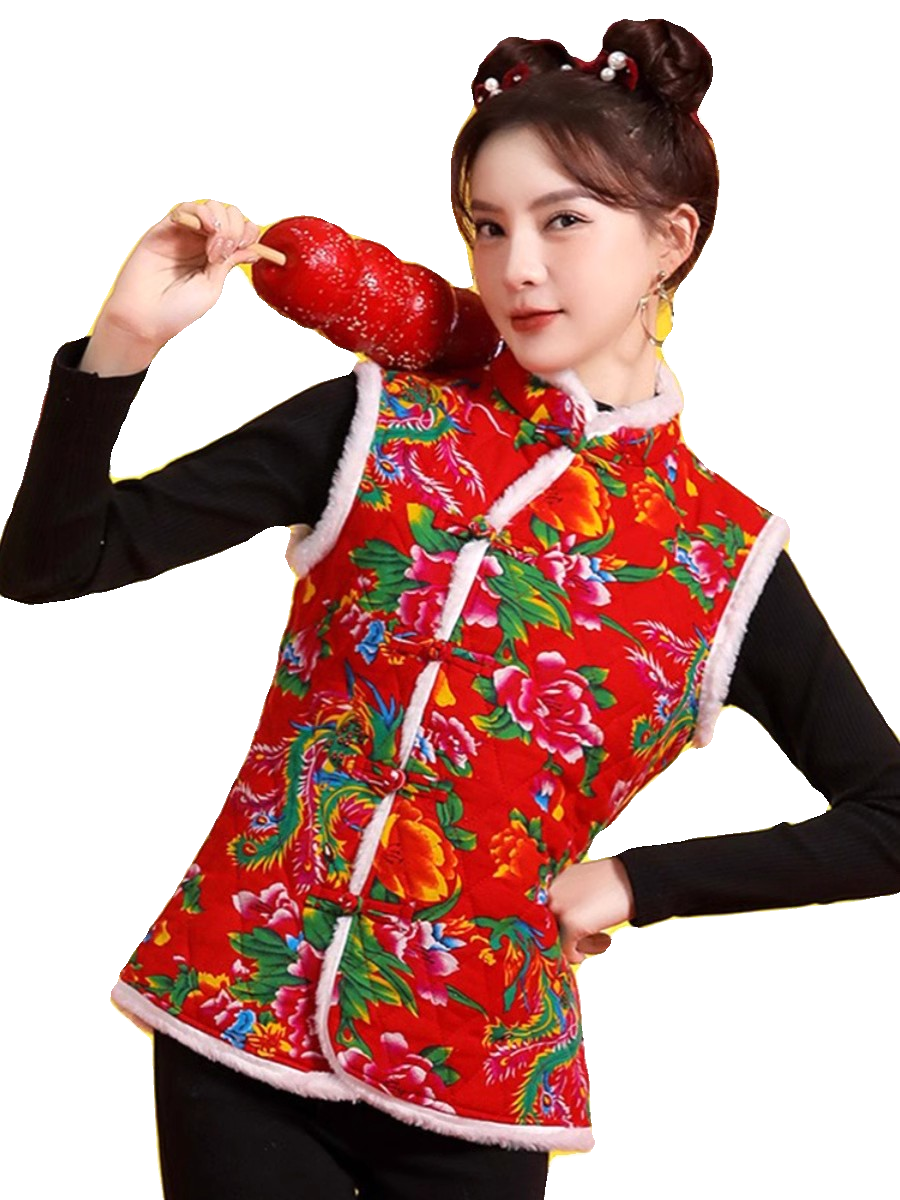 东北大花棉袄女马甲冬季新款衣服碎花农村村姑妈妈装国风大码包邮