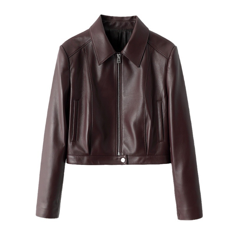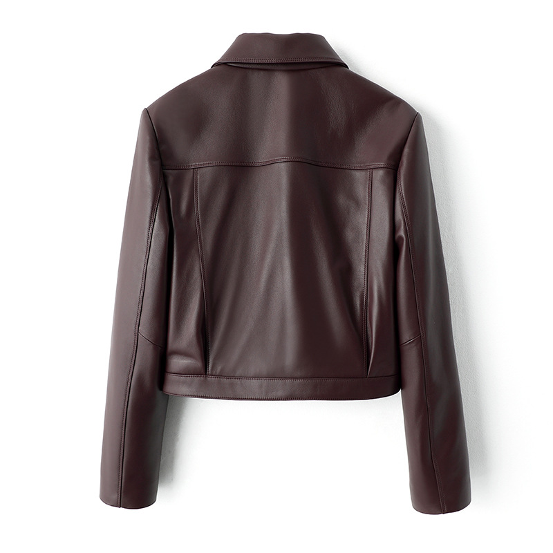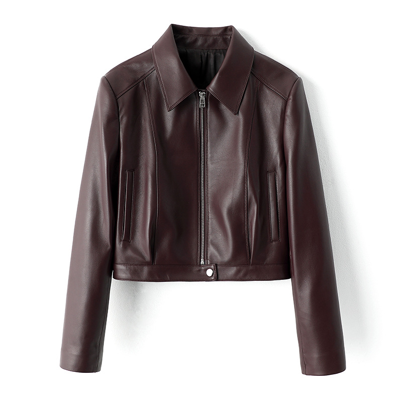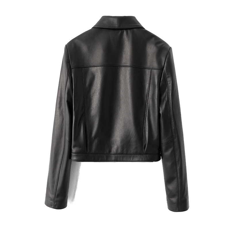 春秋新款女装拉链机车皮衣翻领黑色绵羊皮真皮夹克短款皮