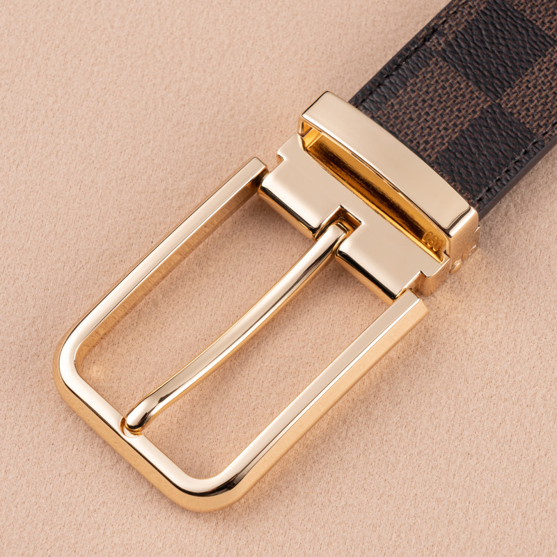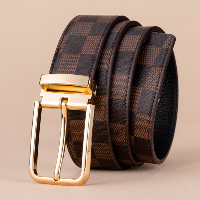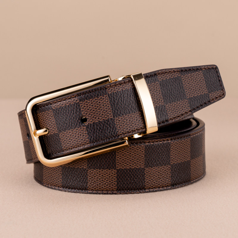 皮带男士真皮针扣牛皮头层休闲针孔腰带年轻人潮格纹商务皮带