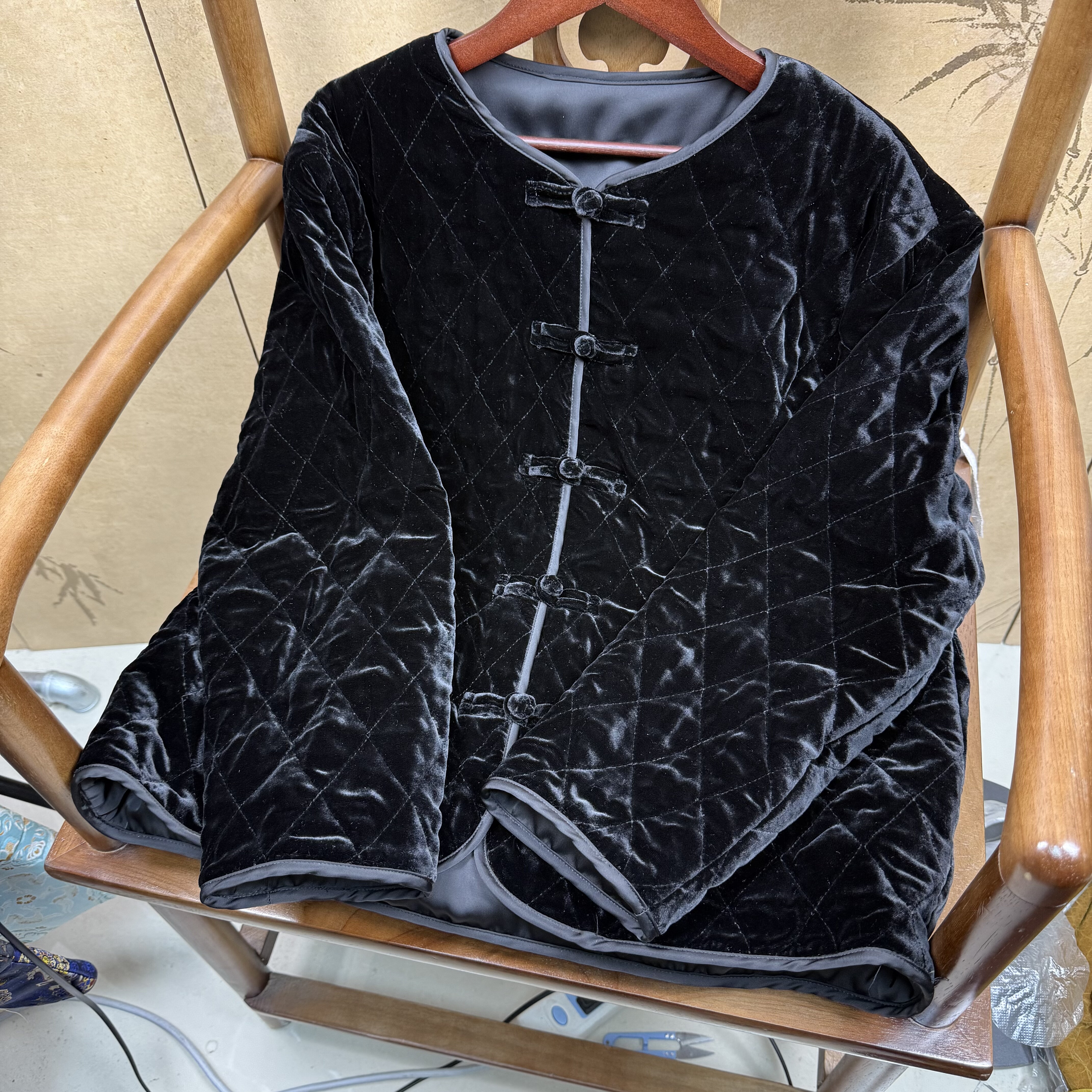100%桑蚕丝真丝丝绒棉服外套新中式国风2025女装新款冬季丝绒外套