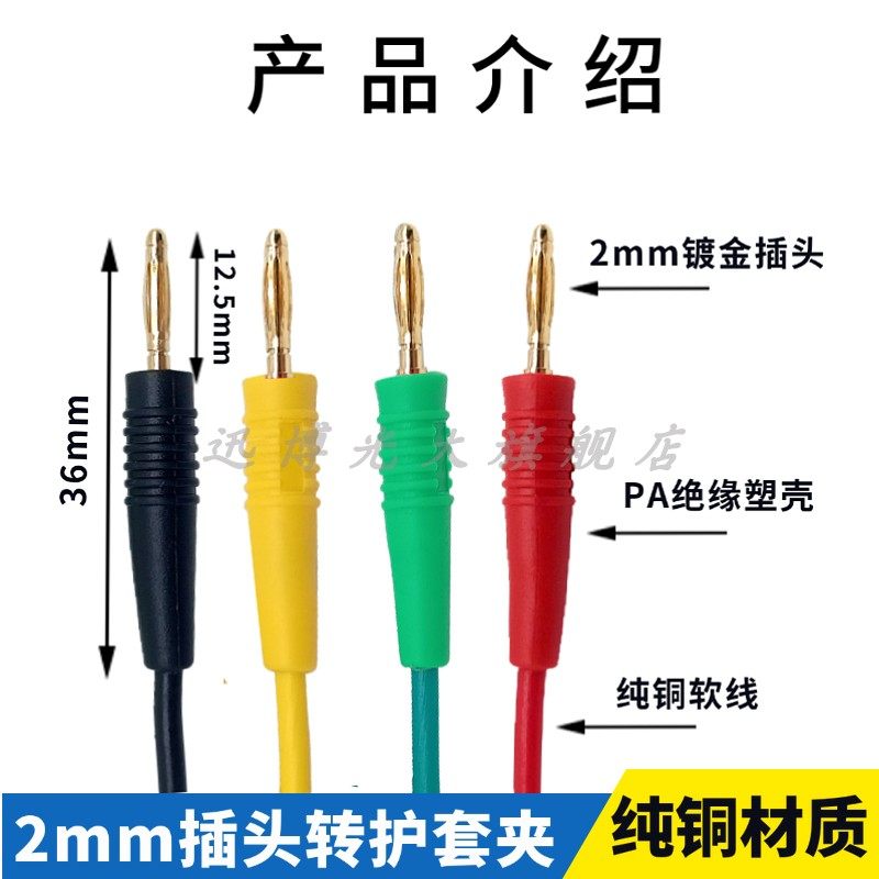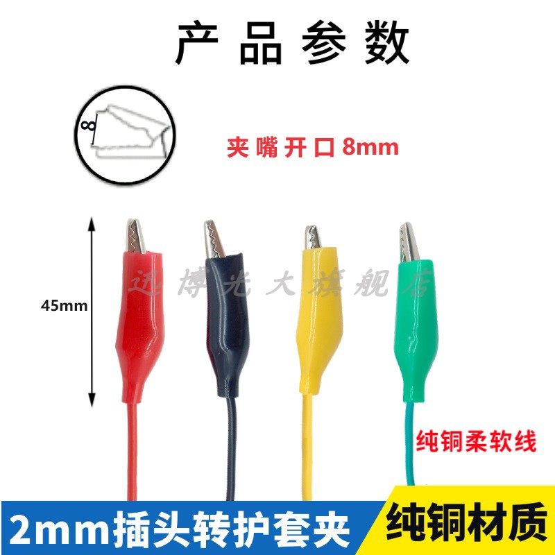 2mm香蕉插头线转鳄鱼夹测试线 绝缘夹护套夹子实验导线电子连接线