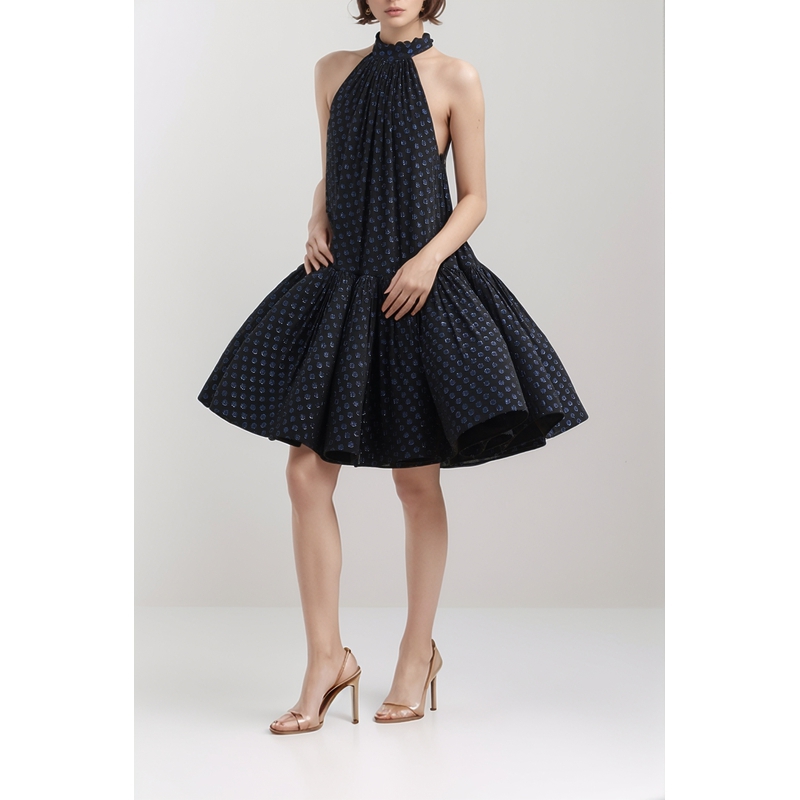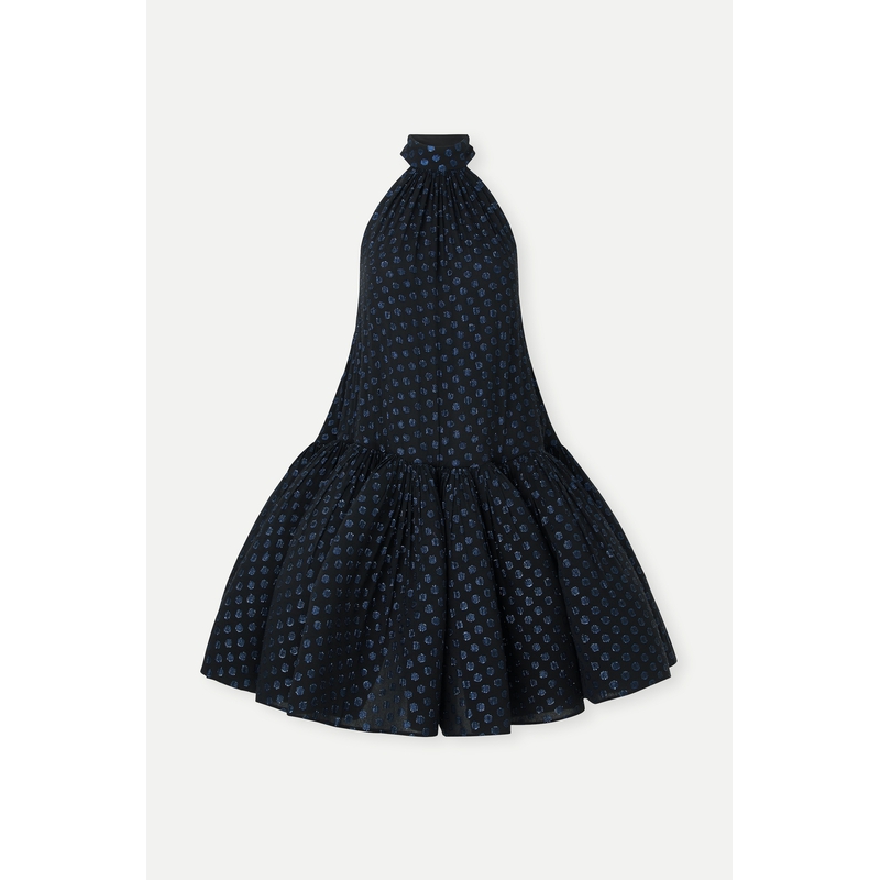 【折扣】LANVIN 圆点提花真丝混纺雪纺绸挂脖迷你连衣裙