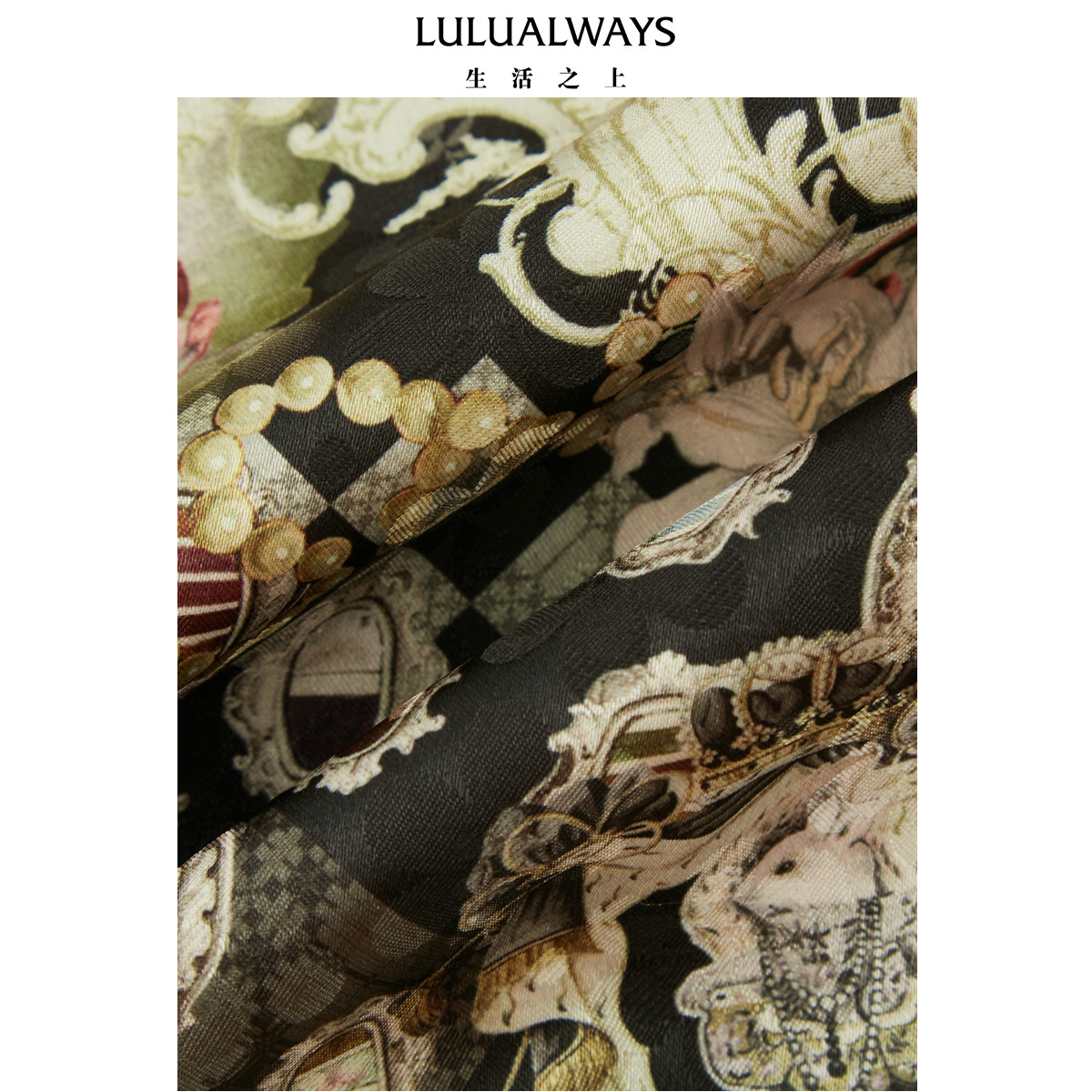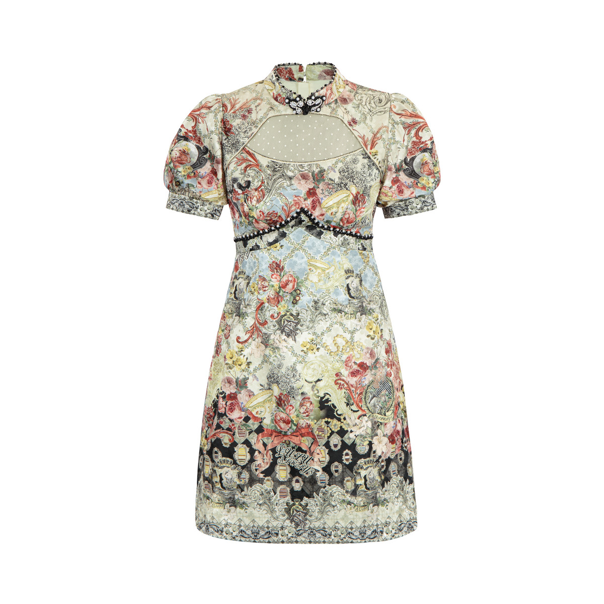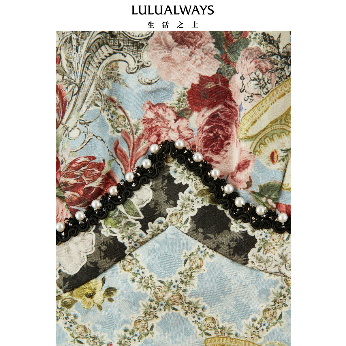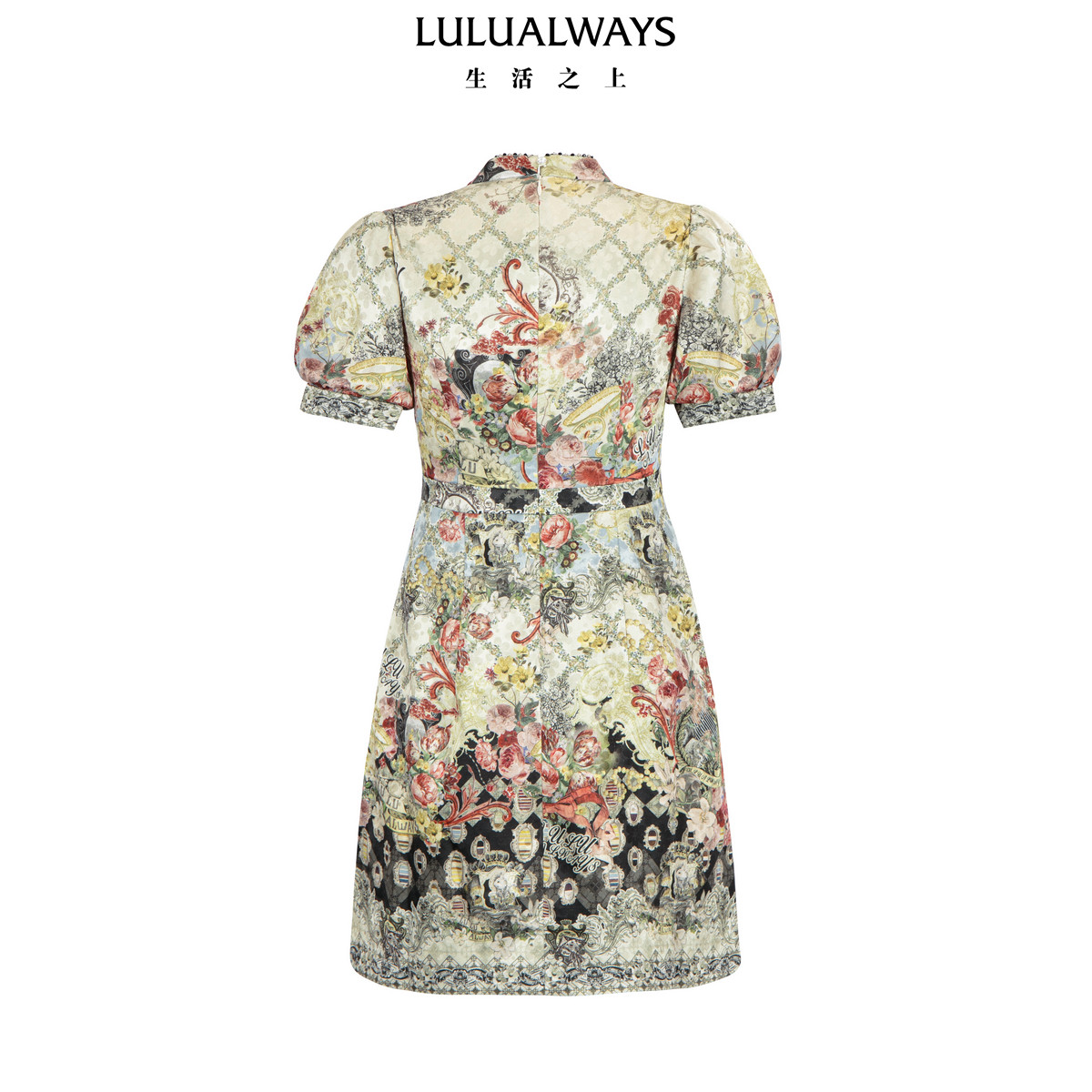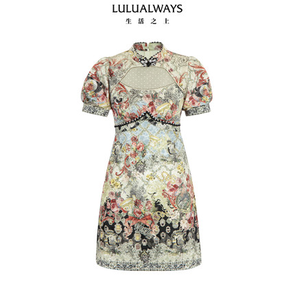 LULUALWAYS【商场同款】新中式名媛立领镂空收腰连衣裙