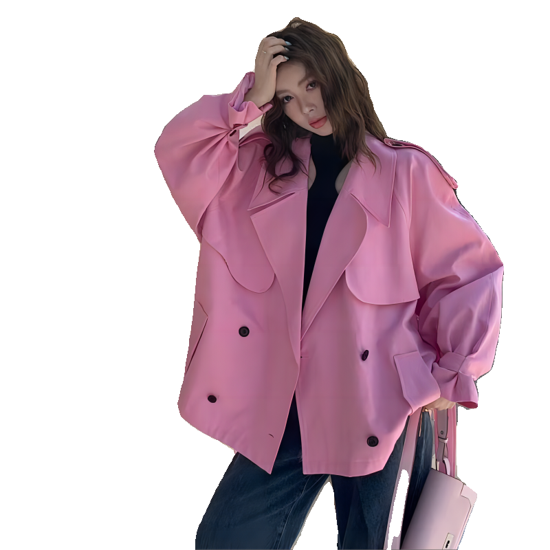 DTU大图2025春季新款韩版时尚简约系腰带风衣外套女短款宽松外套