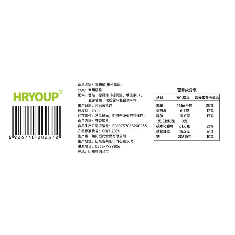HRYOUP黑松露鲜香菇脆果蔬干非冻干油炸独立小包装即食休闲零食
