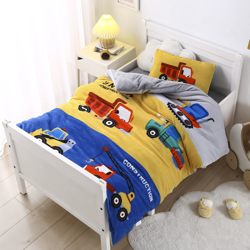 幼儿园被子三件套冬季珊瑚绒被套儿童床品宝宝牛奶绒婴儿床六件套