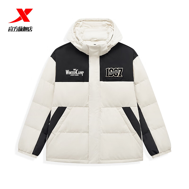 特步羽绒服男保暖舒适2024冬季新款撞色潮流加厚外套976429190578