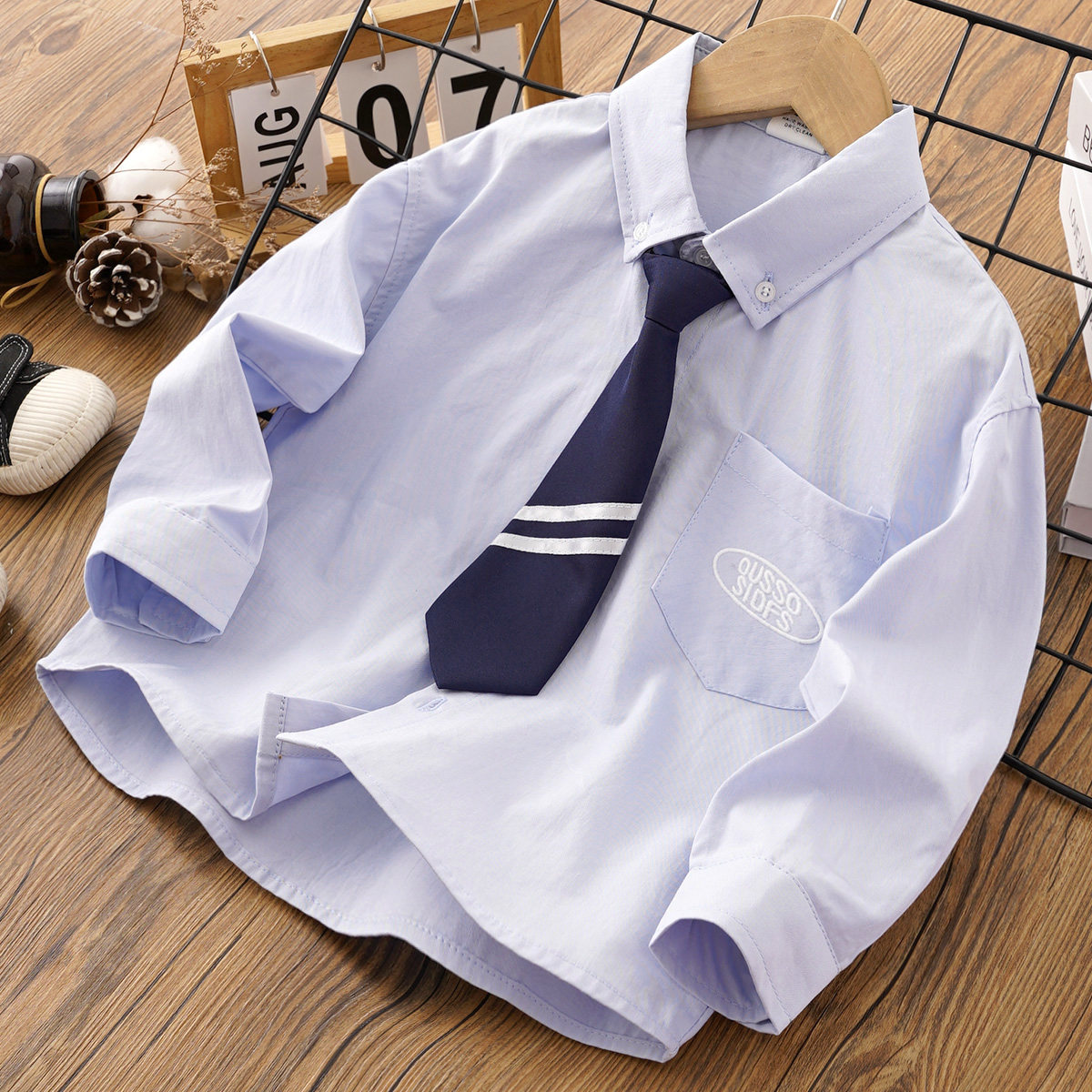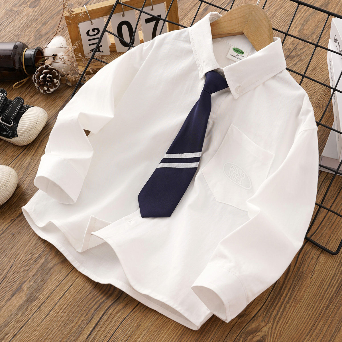男童学院风领带白衬衫春秋新款儿童长袖衬衣纯棉男孩宝宝秋装上衣