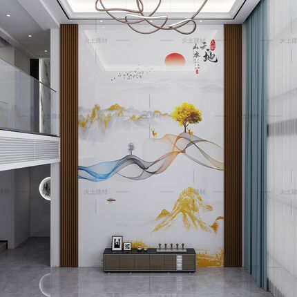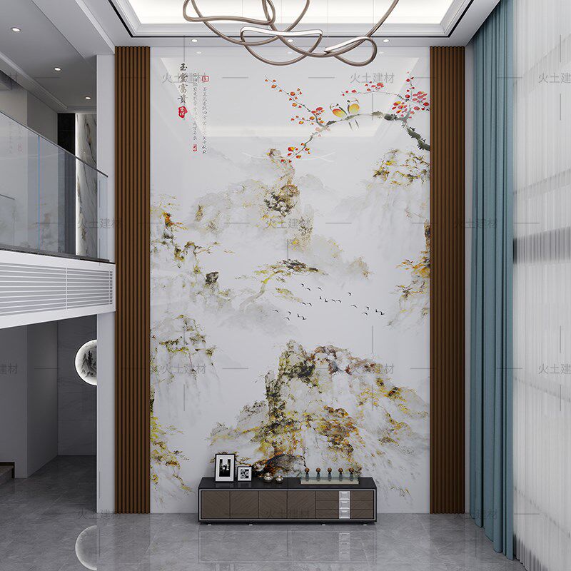 覆式楼高温微晶石岩板电视背景墙瓷砖大理石沙发装饰壁画客厅玄关