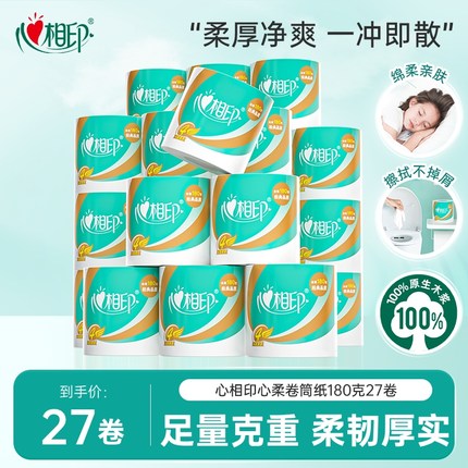 心相印卷纸有芯大卷卫生纸实惠装家用卷筒纸纸巾厕纸180克27卷