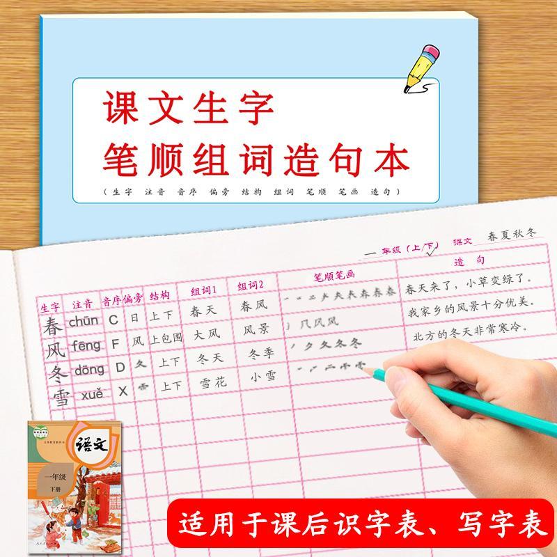 课文课后生字笔顺笔画偏旁音节组词句子本16开空白版小学生写字表识字表一类字二类字课堂同步作业练习本