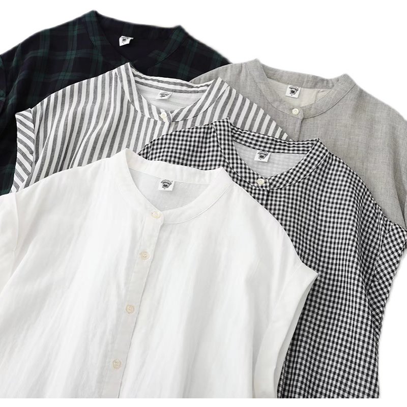 纯棉文艺小清新立领半袖百搭上衣