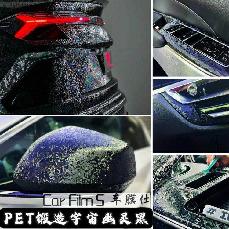 pet汽车彷真锻造元宇宙幽灵黑碳纤维内饰贴纸中控后照镜改色贴膜